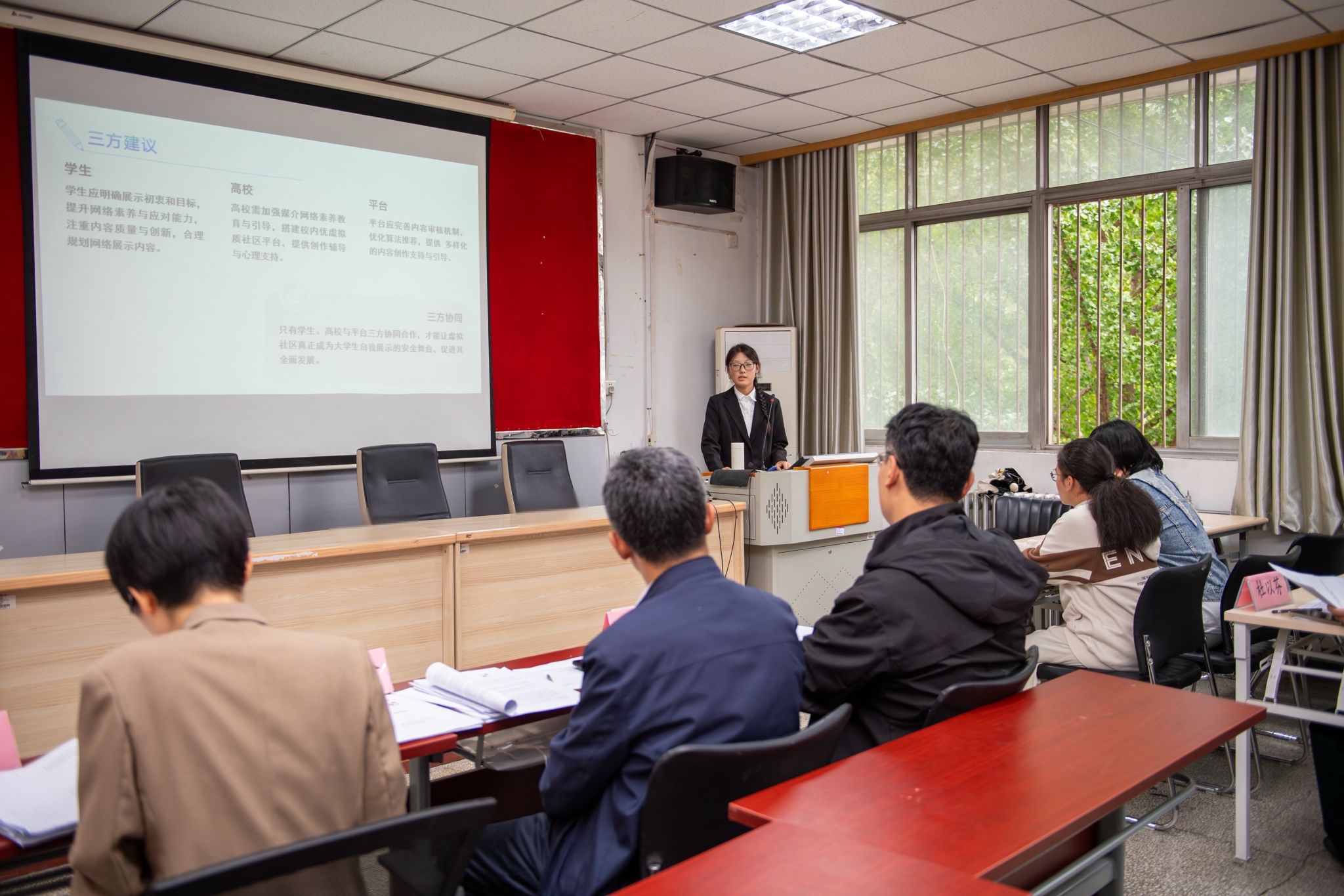 “一支部一品牌、一专业一赛事”育人理念的指引下,持续推进专业赛事建设,吸引了众多学子踊跃参与。本次大赛分为本科生与研究生两个赛道,共设置数字社会工作虚拟仿真对抗、社会工作案例、社会工作情景剧、社会工作论文和调研报告五大模块。其中,数字社会工作虚拟仿真对抗赛作为本届新增特色模块,依托数字化教学手段,实现了赛事形式的创新突破,成为本届“青山杯”的一大亮点。大赛共收到64支参赛队伍的踊跃报名。除数字社会工作虚拟仿真对抗赛通过线上方式决出决赛名额外,其余模块经过严格初审,共有34件优秀作品晋级决赛。在紧张而有序的展示与答辩环节中,选手们沉着应对、积极交流,评委们专业提问、严谨评审,最终各项大奖花落有主,赛事取得圆满成功。