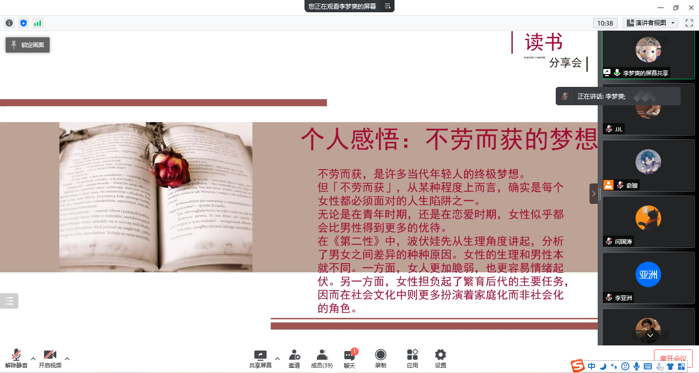 本次分享会共有四位同学就所读的社会学名著进行了推荐和分享。