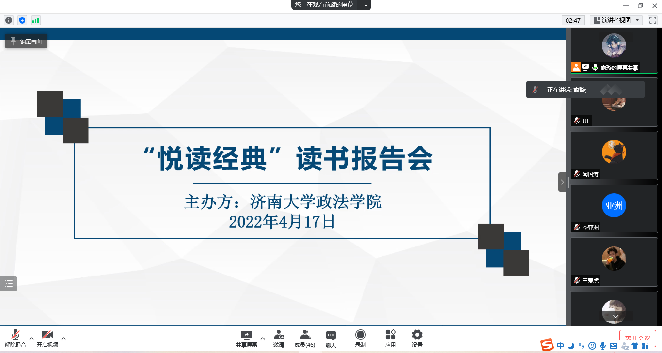本次线上读书报告会活动的成功举办,丰富了同学们的校园生活,激发了同学们的读书热情,通过思想火花的碰撞,进一步促进学思结合,有效推动研究生学术素养的提升。