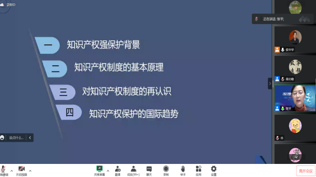 张平教授从介绍我国知识产权的强保护背景入手,对知识产权制度的基本原理进行了阐述。张平教授指出,知识产权的法律特征除了垄断性和公开性之外很难具有普适性;知识产权的基本原则以先占理论、排他理论和重商理论为基础,以国家产业政策为主导,保护的主要是投资人的独占利益;知识产权的私权与特权本质上并非完全对立,其侧重点的不同导致了制度设计的结果不同;现行知识产权制度要平衡效率与公平、创新和竞争、诚信与战略的关系。关于知识产权制度的市场机制,张平教授认为,知识产权与市场经济密不可分,知识产权权利人用公开获取垄断权进而获得高额利润,在利益驱动下,知识产权制度达到国家鼓励创新和竞争的目的;在知识产权与技术引进上,技术输出方充分利用知识产权的布局在获取高额许可费之余,积极寻求抢占市场以获得市场竞争优势地位;在全球自由贸易框架下,知识产权制度是扩展市场的矛,而在贸易保护主义框架下,其是保护本国市场的盾。讲座的最后,张平教授对知识产权制度提出了自己的再认识。技术的变革和互联网时代导致知识产权制度进入到利益寻租时代,因此应从产业政策论角度来理解知识产权制度。同时,知识产权的保护已进入升级阶段,我们应当不忘初心,牢记知识产权制度的宗旨,尊重市场,以迎接更多的机遇和挑战。