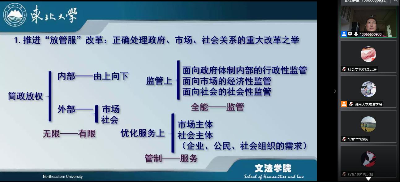 “青龙山论坛•线上系列论坛”第八期在腾讯会议平台顺利举行。活动邀请全国MPA教育指导委员会委员、东北大学文法学院博士生导师孙萍教授做题为《“放管服改革”:从制度优势到政府效能》的专题讲座。讲座由绅士漫画