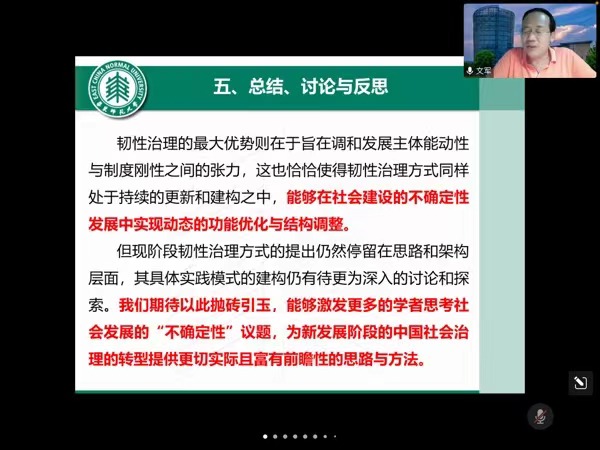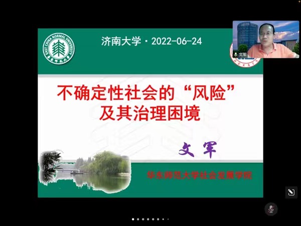 青龙山学术论坛在腾讯会议线上平台举办,特邀教育部“长江学者”特聘教授、华东师范大学社会发展学院院长文军教授做题为《不确定性社会的“风险”及其治理困境》的学术报告。报告会由院长高功敬教授主持,学院相关学科教师及研究生、本科生共120余人参加。