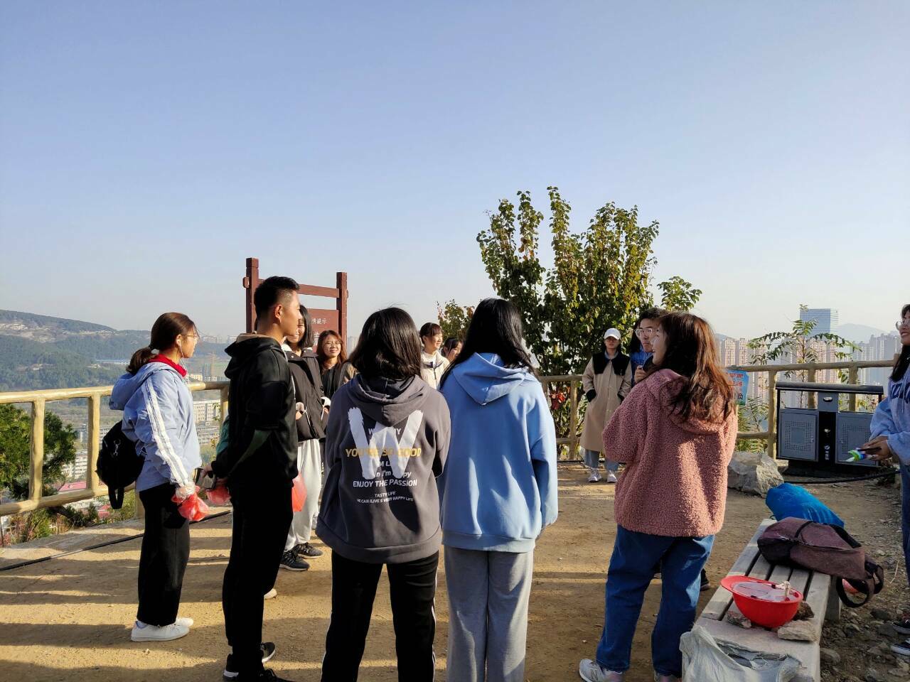 上午8:00左右,志愿者们正式踏上了登山旅程。一路上大家载歌载舞,忘却了一周的课程给他们带来的疲惫。志愿者沐浴在自然之下,身心也获得了放松。登山途中,志愿者欣赏风景的同时不忘捡拾山上的垃圾。在平台休息处,李红波与王梦雨分别为大家讲述了垃圾分类与消防的有关知识,志愿者认真听讲,并在提问环节积极回答。随后,志愿者们成功登顶,他们在山顶上远眺,朦胧之中看不见边际,却为此增加了一丝美感。志愿者们欣喜地拍照留念,定格住这个美好时刻。下山途中,为增进成员的感情,志愿者们进行了几个小游戏。田茂泉为大家讲述了马武寨山的气候及植被情况,也加深了他们対马武寨的印象。上午10:00,净山小分队回到山脚。至此,本次活动画上了完美句号。