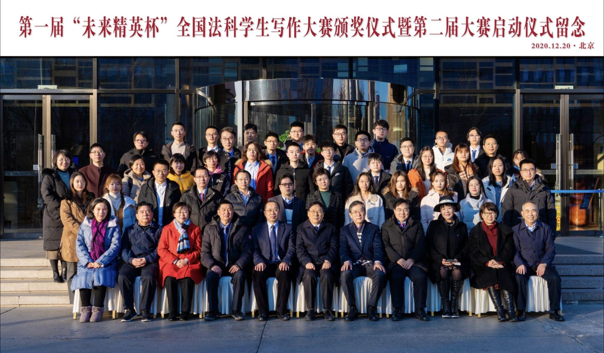 2020年12月20日,第一届“未来精英杯”全国法科学生写作大赛颁奖仪式暨第二届启动仪式在北京中国科技会堂举办。中国法学会党组成员、大赛组委会名誉主任张文显教授,中国法学会法学教育研究会常务副会长、中国人民大学韩大元教授,《中国法学》总编、大赛组委会主任张新宝教授,对外经贸大学副校长王敬波教授等十余位专家学者作为嘉宾受邀出席本次颁奖典礼。另有来自数十所高校的获奖同学、指导教师以及多家媒体参会。