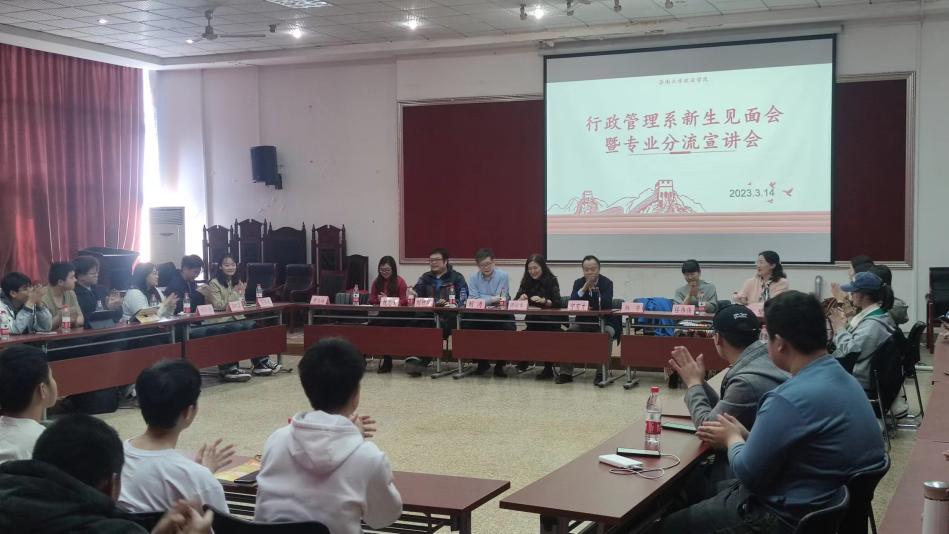 此次见面会暨宣讲会不仅使同学们对行政管理专业有了更清晰全面的认识,为他们更好地规划学业和职业生涯提供了思路,而且进一步拉近了师生距离,融洽了师生关系,为教学相长、师生共进提供了条件。行政管理系将继续坚持“为党育人、为国育才”的初心使命,全面贯彻党的教育方针、落实立德树人根本任务,为培养造就能够堪当民族复兴重任的时代新人贡献力量。