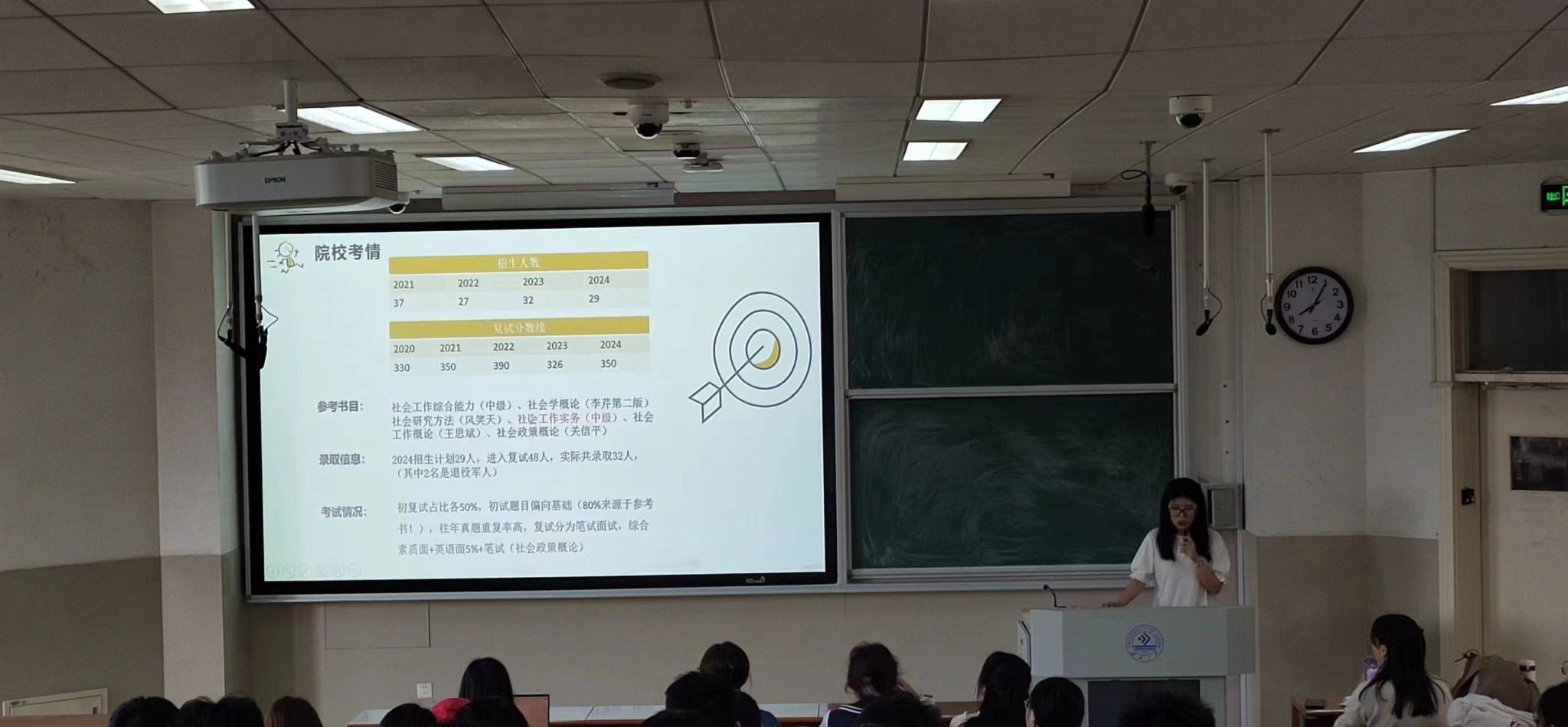 最后,邱莉老师就此次分享会进行了总结。老师再次肯定并祝福六位同学取得佳绩,同时也勉励21级、22级同学结合院校的报录比、复录比、真题难度等信息尽早锚定考研目标,制定考研复习计划,夯实专业基础知识,提高专业能力,以期考研成功上岸。