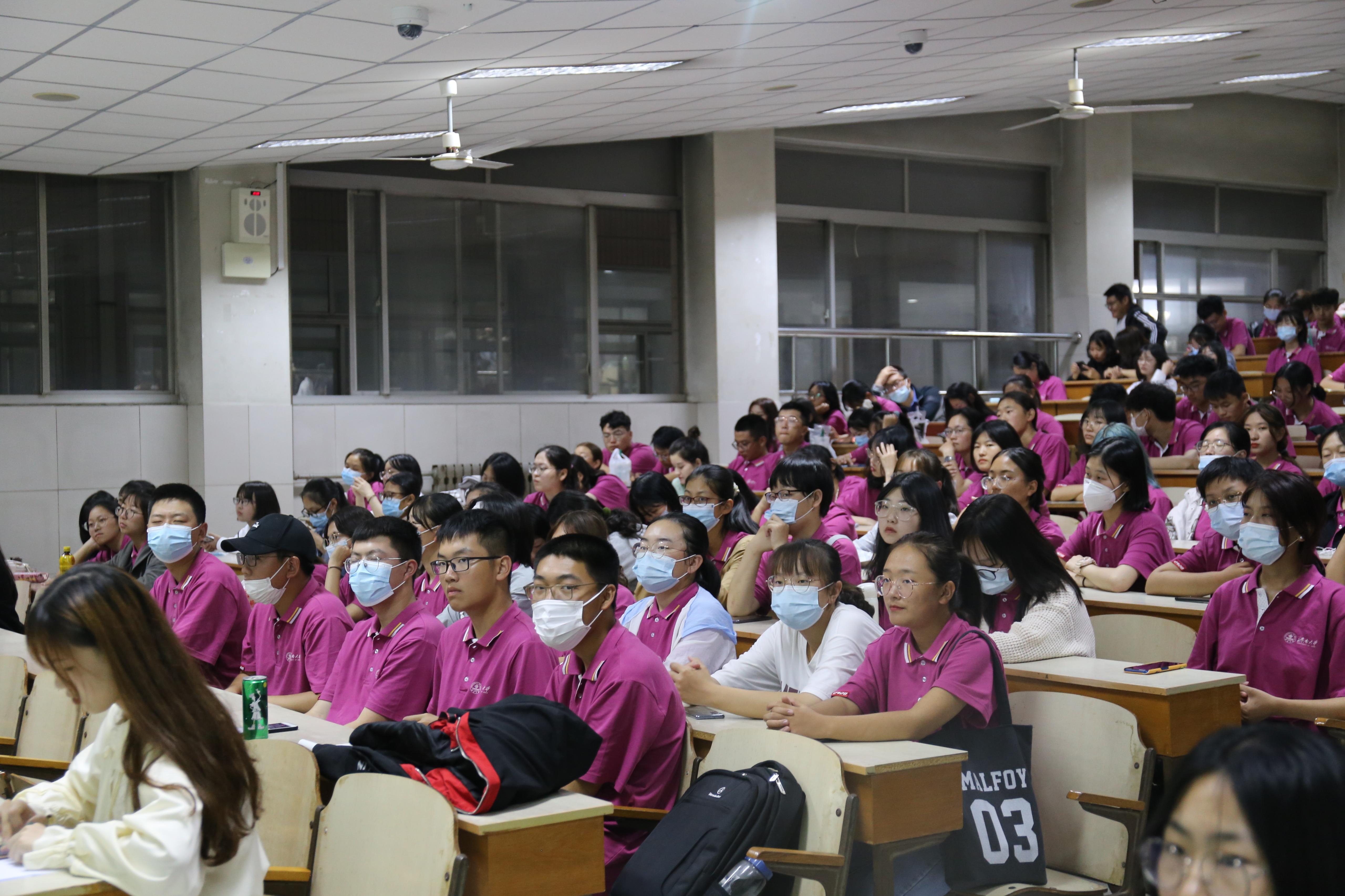 2020级新生辅导员赵朔老师,往届优秀学长学姐代表和全体2020级新生参加本次活动。