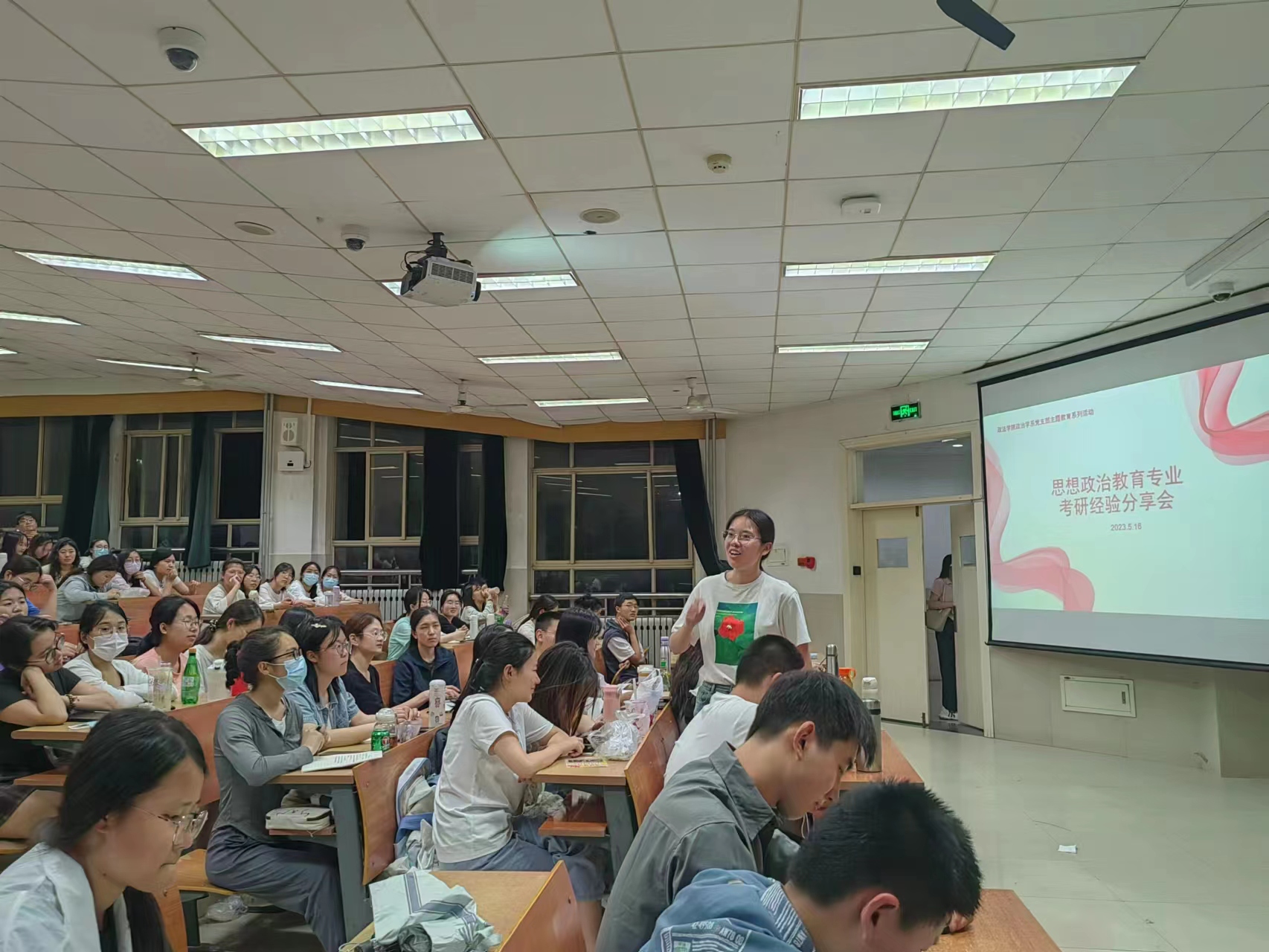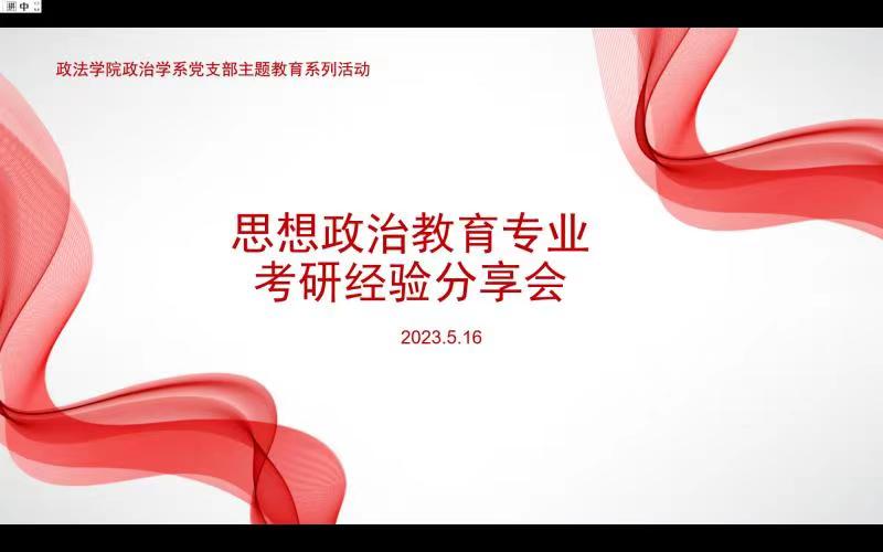 政治学系党支部于5月16日晚在11教举办了思想政治教育专业2023考研分享会。本次经验交流会请到了2019级优秀考研毕业生代表王菲、韩长乐、吴长倩、孔浩、侯广雨五位同学,向准备考研的同学分享心得,为大家解答考研的疑惑,使大家了解最新的考研动态。政治学系系主任代洪亮老师和政治学系党支部书记苏宝俊老师全程参与指导,思政专业各年级150余名同学参与活动。
