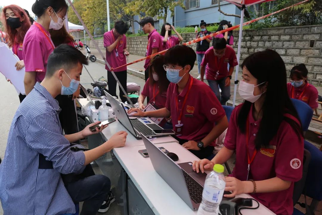 为全面做好高校疫情防控工作和迎新工作,学院高度重视迎新过程中疫情防控工作的进行,同时学院组建了志愿者团队,负责省外新生核酸检测、新生报道、引导并疏通人群等工作以保障学生安全。
