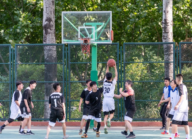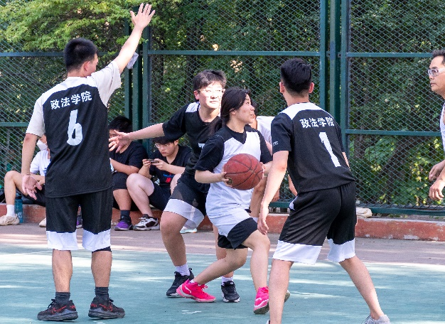 下午四点,篮球赛正式开始,刘宗明副校长为本场比赛开球。篮球健儿们主动出击,以矫健熟练的动作迅速进入状态。比赛场上,队员们熟练运球、传球、投篮,举手投足间处处彰显着团结协作的力量。比赛场外,加油呐喊的声音此起彼伏,默契的传球、精准的投篮、利落的进球,彰显了政法学子的青春活力和昂扬奋进。整场比赛虽然充斥着紧张的竞争氛围,但也时刻体现着友谊第一、比赛第二的高贵精神。