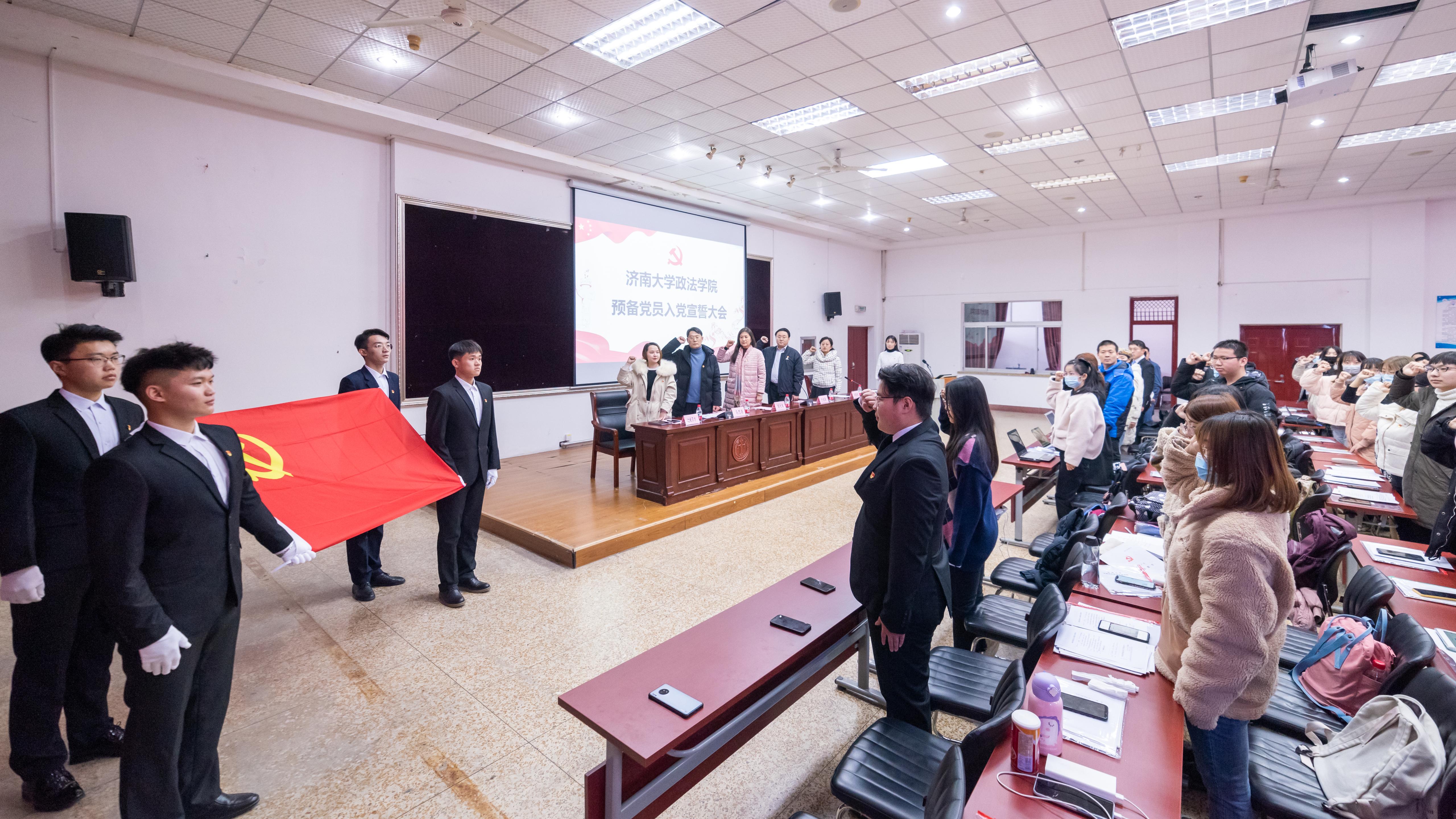 党委在4号教学楼模拟法庭召开2020下半年学生预备党员入党宣誓大会。学院正处级组织员国迎春,学院党委副书记、副院长于龙泉,学生第一党支部书记马思源,学生第二党支部书记刘晓娟,学生第三党支部书记迪妮尕尔·艾尔夏提,研究生党支部书记胡传清和105名新发展的预备党员参加会议。会议由刘晓娟主持。