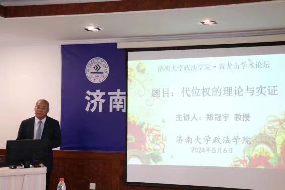 青龙山学术论坛在第四教学楼428教室举行。本次论坛邀请东吴大学法学院院长郑冠宇教授作题为《代位权的理论与实证》的报告,论坛由法学系主任刘康磊教授主持,山东圣义律师事务所律师、绅士漫画