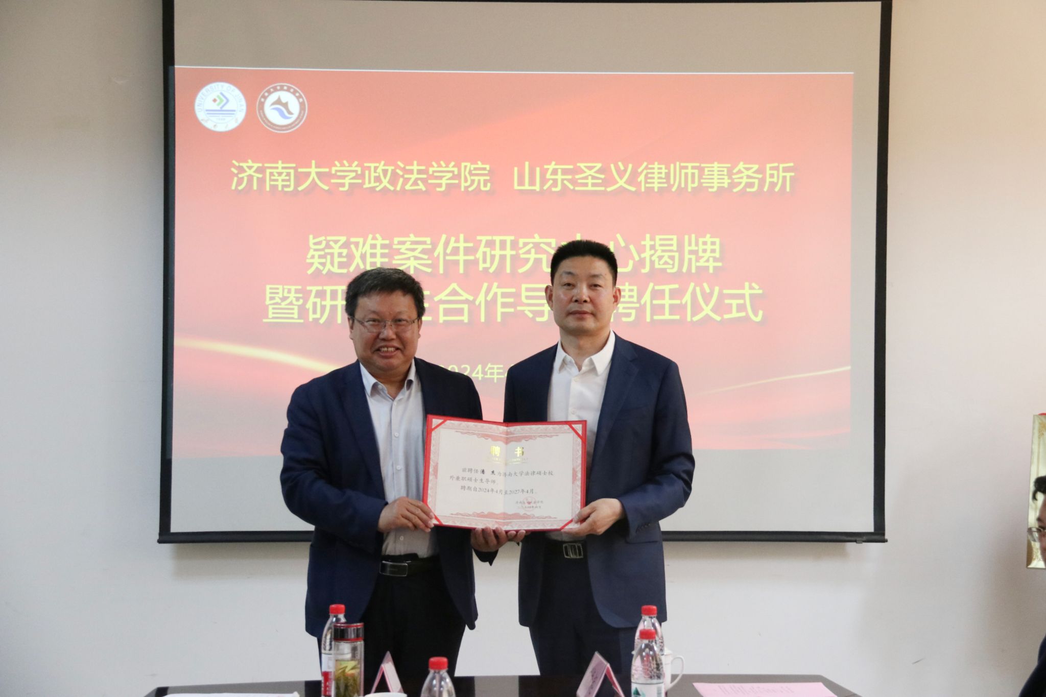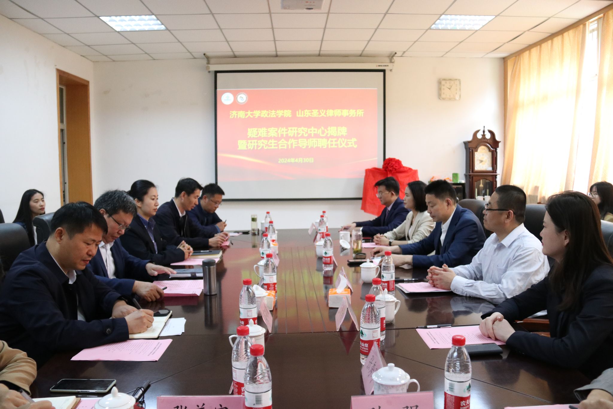 与山东圣义律师事务所于第三教学楼213会议室举办疑难案件研究中心揭牌暨研究生合作导师聘任仪式。济南市律师协会会长、山东圣义律师事务所党支部书记、主任潘杰,副主任王培国、黄春燕、张珊珊、刘振起、张秀玲,绅士漫画