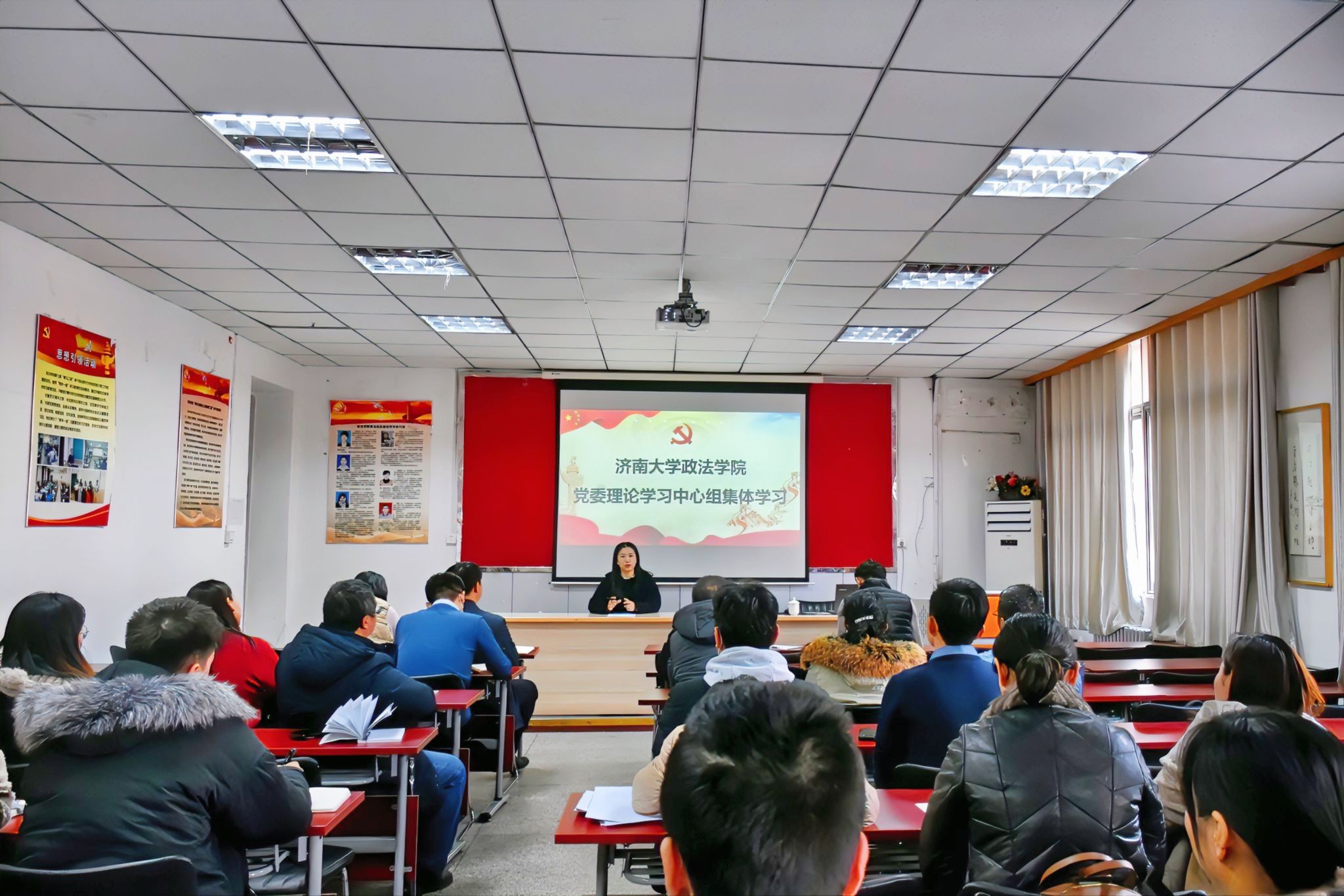 党委理论学习中心组进行集体学习,学院党委理论学习中心组全体成员参加,学院科级干部、党支部书记、系部主任、辅导员列席,学习会由学院党委书记李春慧主持。