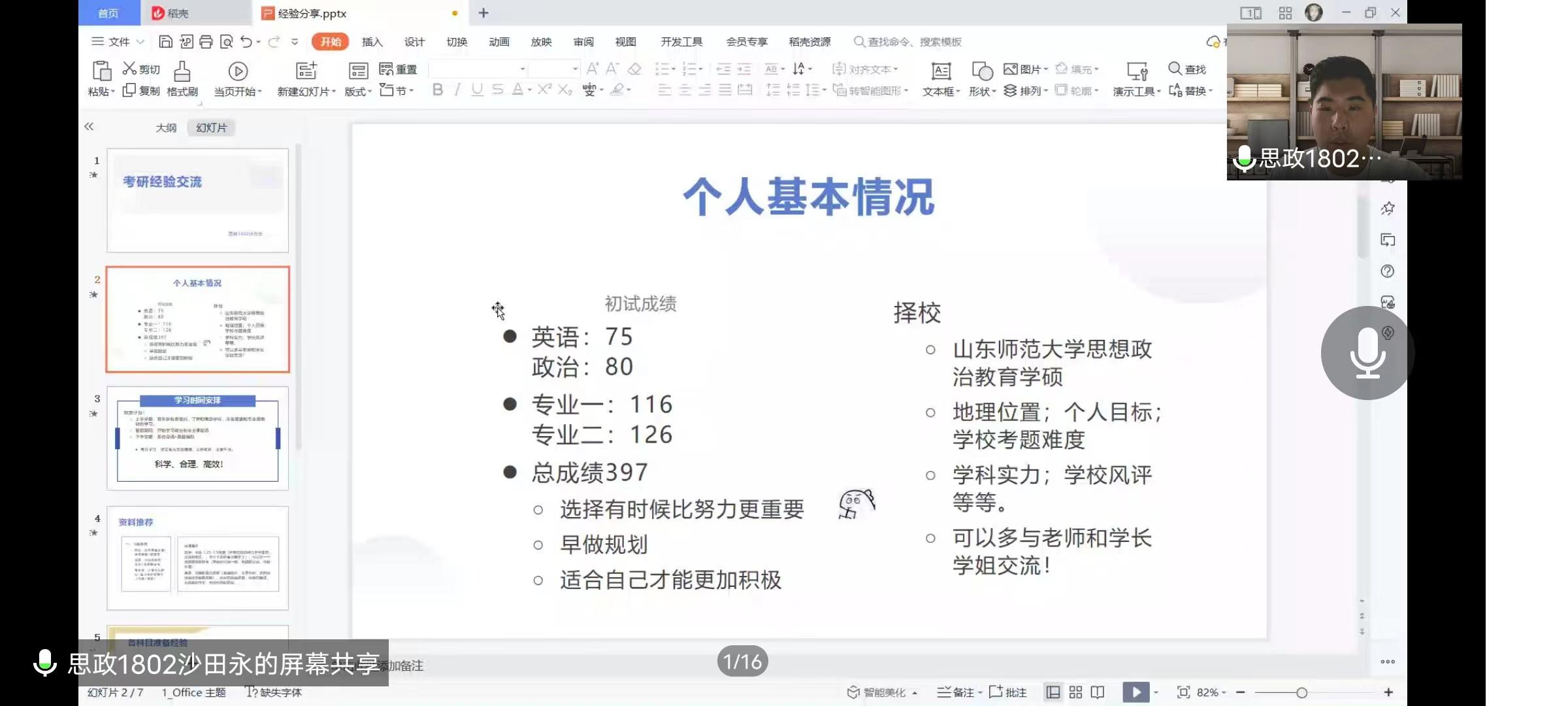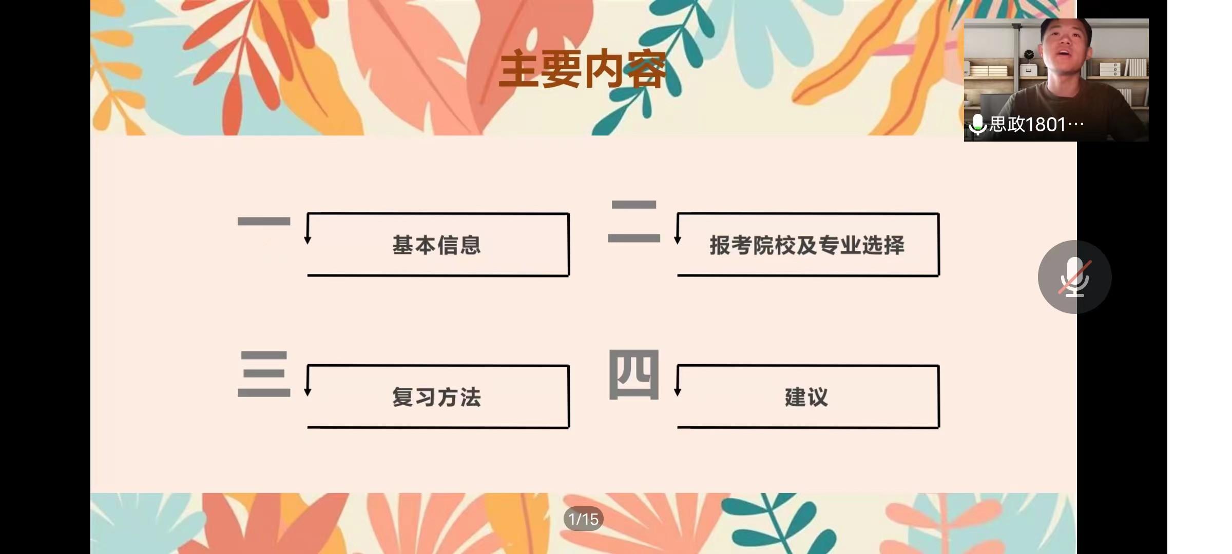 政治学系举办了线上考研经验交流会。会议邀请了思政专业2018级考研成绩优异的黄子一、王哲、沙田永、韩燕四位同学分享了经验。苏宝俊老师主持会议。