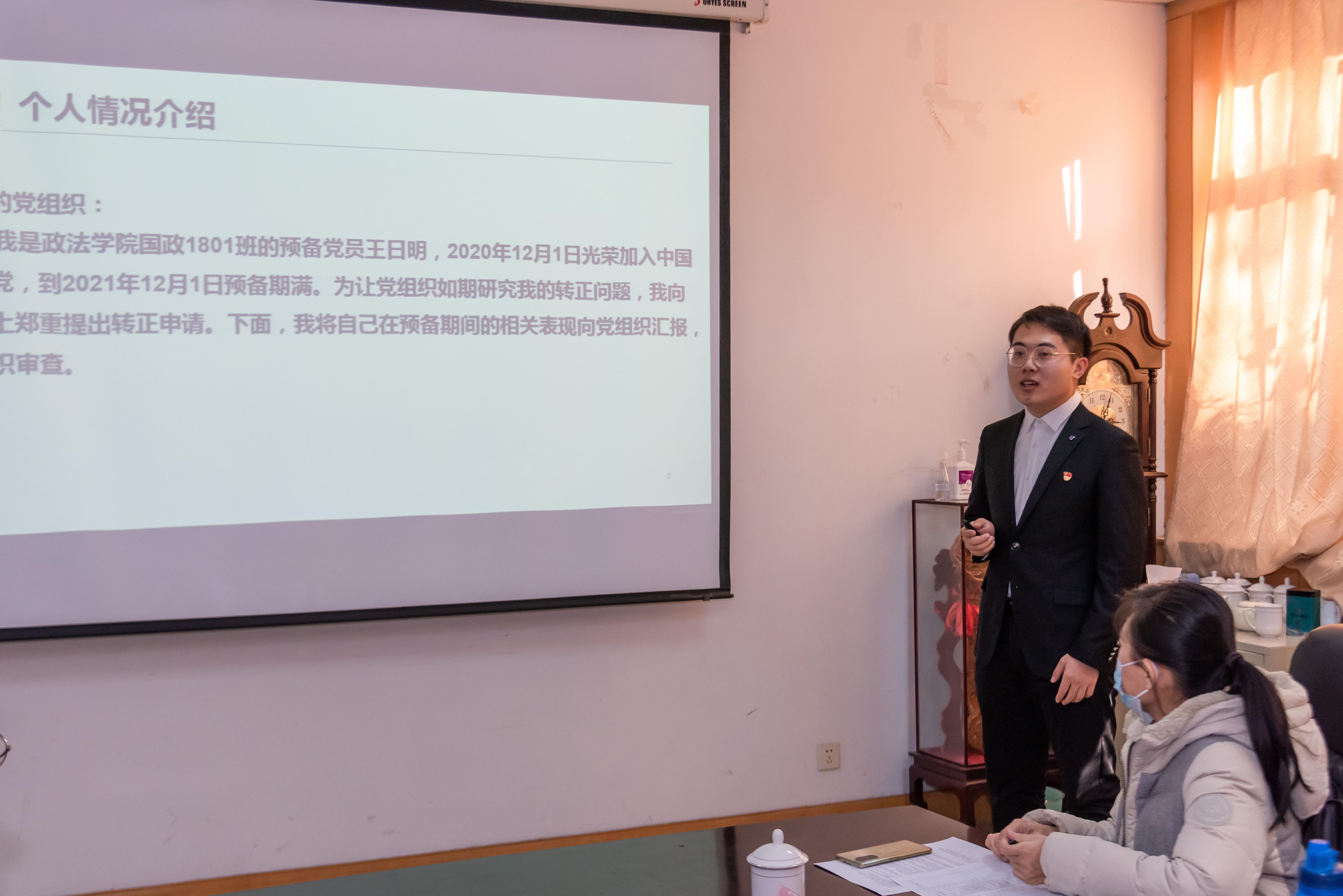 各位学生预备党员依次作自我陈述,从思想政治表现、学习工作情况、模范带头作用发挥情况、存在的问题和不足以及今后的努力方向等方面汇报本人预备期间的表现,所有预备党员进一步坚定立场,明确了未来努力的方向,立志将自身打造成听党话,跟党走,素质过高、本领过硬的时代先锋和民族脊梁。