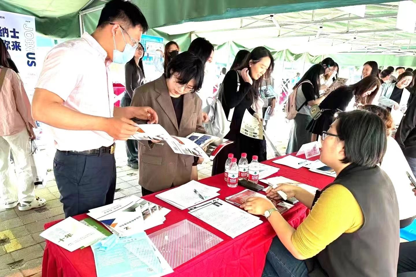 招聘现场,刘宗明、陈其军等与各个展位参会单位代表沟通交流,充分了解用人单位具体招聘需求与学生简历投递情况,了解学生的就业意向与就业过程中遇到的难题,鼓励学生充分做好就业准备,发挥专业优势,实现高质量就业。