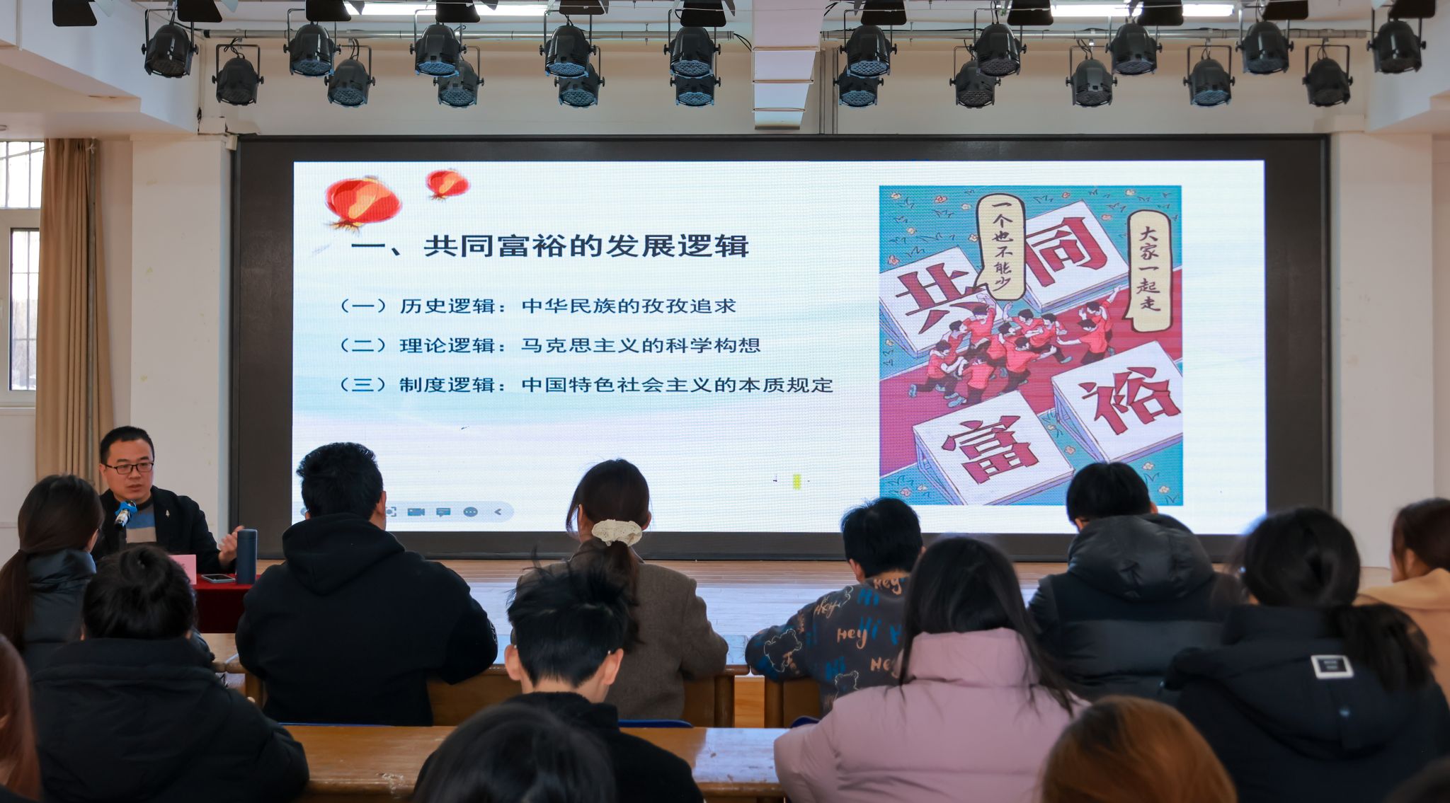 专题团课阶段,学院张世青教授以“扎实推进全体人民共同富裕的中国道路”为题讲授专题团课。团课联系当代中国的深刻变革,着重从习近平新时代中国特色社会主义思想的核心要义和理论品格、党的二十大精神等对于共同富裕的发展逻辑、科学内涵、实现路径进行讲解,引导学员们深刻理解在中国式现代化道路下共同富裕的规律性认识、推进全体人民实现共同富裕的根本遵循和行动指南,激励学员们要肩负历史使命,增强个人本领,为实现“两个一百年”奋斗目标、实现中华民族伟大复兴的中国梦而勤奋学习、努力工作。