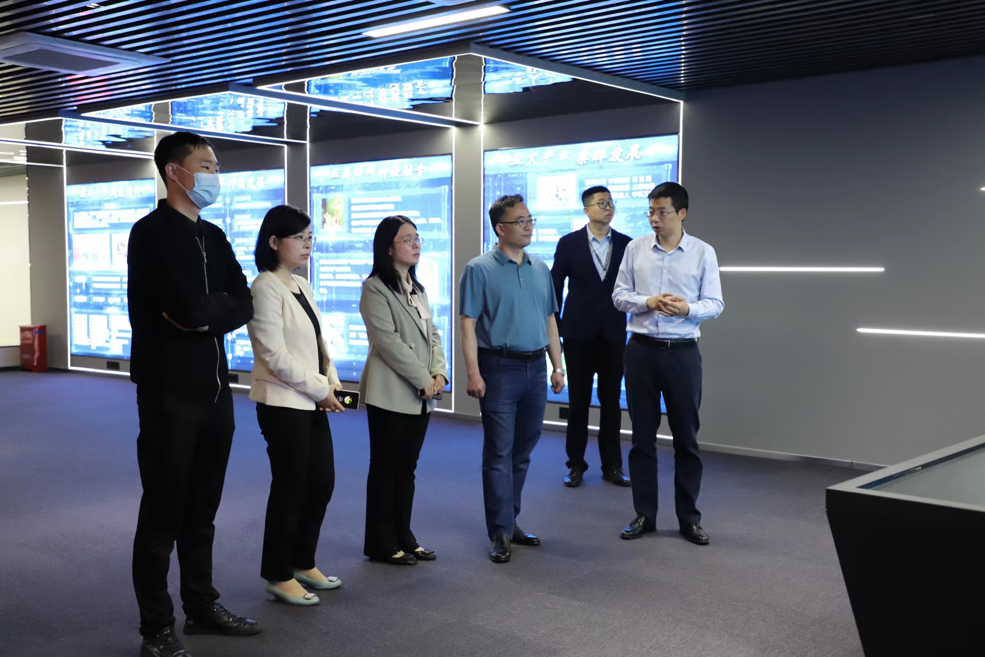 一行参观了国科中心的数字化展示大厅,国科中心副总经理张明向大家介绍了国科中心的成立背景、发展理念、科技成果转移转化创新模式、科技金融创新做法等。