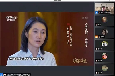 活动伊始,由社长刘志坤同学介绍共青团的发展历程,社员们在感慨前辈们艰辛奋斗的同时,展望着共青团的美好未来。而后,刘志坤同学明确了本次活动的目的,是追寻信仰之光,勇担青春使命,不负党的信任。接着,由李熙磊同学为大家播放了巾帼豪杰向警予的纪录片,向警予伟大的革命精神感动着同学们,鼓舞着大家坚守内心信念,不断向着理想与光明前进。最后,社团成员们积极分享了观后感悟,大家表示此次活动使自己更加明确了奋斗目标,对自身所肩负的责任有了进一步的认识。至此,会议圆满结束。