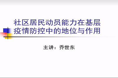 社会学系乔世东教授主讲,讲座题目为《社区居民动员能力在基层疫情防控中的地位与作用》。讲座由学院副院长李慧明主持,学院部分老师、研究生、本科生近百余人在线观看和互动。