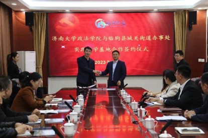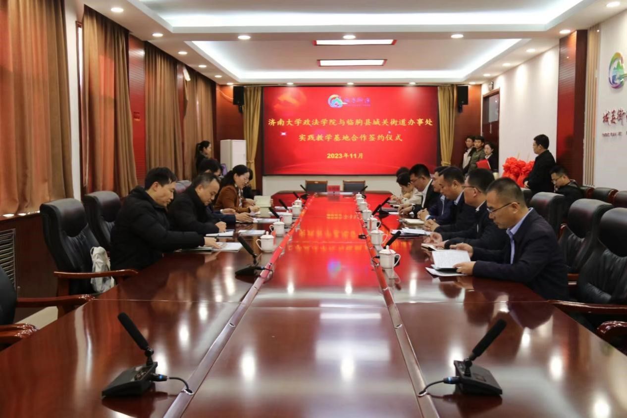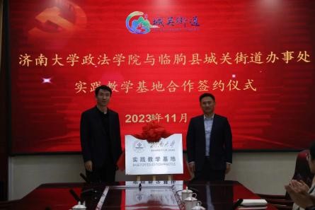 与临朐县城关街道办事处顺利举行校地合作签约仪式。学院李涛副书记带队,行政管理系宁有才、韩慧、社会学系高朋、人力资源与社会保障系孙红晔等参加此次活动。临朐县干部教育中心主任王成建、城关街道办事处主任陈敬等领导出席签约仪式。