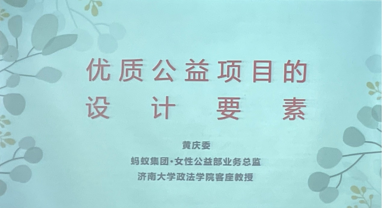 讲座伊始,梁丽霞教授首先代表学院对学子黄庆委重返校园表示诚挚欢迎;随后,黄庆委总监向参会师生介绍了社会工作在国内蒸蒸日上的发展现状;紧接着,黄庆委总监从创造价值、需求导向、技术解决方案和组织运营四个维度,穿插生动的案例分析,深入浅出地阐述四要素的重要性和其在公益项目设计中的作用。黄庆委总监先从创造价值维度切入,指出公益项目是否创造价值首先要看其能否带来社会价值;公益项目应同时紧密围绕社会的需求导向展开,只有通过了解社会需求才可能得出最佳的解决方案,从而推动公益项目的成功;说到技术解决方案,黄庆委总监指出优质的公益项目设计不仅要有清晰的理论框架和核心设计理念,而且还需充分统筹考虑项目的可持续性;对于组织运营,黄庆委总监提出机构中的领导人、骨干团队、文化以及合规自律都是非常重要的。讲座最后,黄庆委总监为济大社工学子送出衷心祝福与鼓励。讲座取得圆满成功。