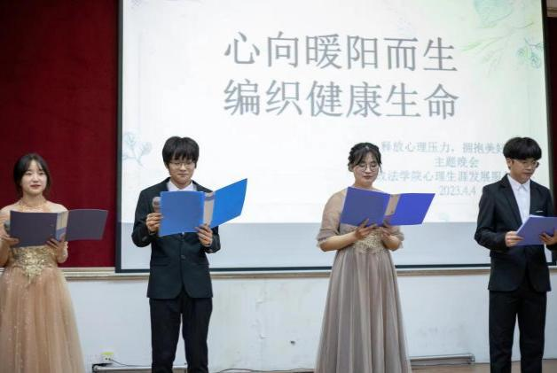 心理生涯发展服务中心于2023年4月4日晚在四教模拟法庭举办“释放心理压力,拥抱美好未来”主题晚会。心协成员们积极参与,共同完成了这场晚会。为现场的观众带来了一场视听盛宴。