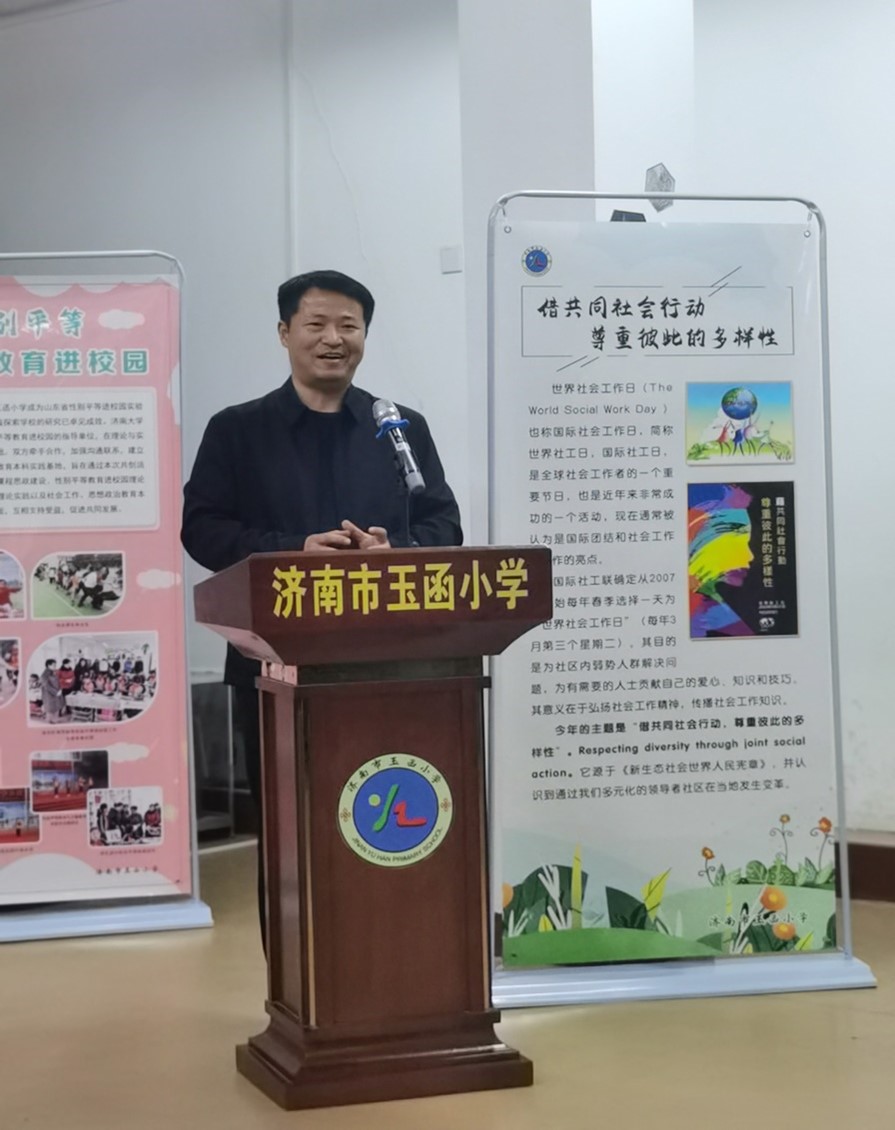 院长、党委副书记高功敬,党委副书记、副院长李涛,社会学系主任韩钰、党支部书记唐斌尧、实习负责人高朋,政治学系主任代洪亮、思想政治教育专业负责人张晖,以及社会工作专业大二、大三40余名学生等,参与此次签约活动。签约仪式由济南市玉函小学校长刘然主持。