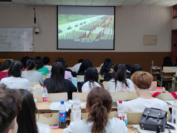 为了弘扬新时代革命精神,传承红色基因,促进学生坚定理想信念,激发爱国主义情怀,预科2201班班主任艾尼瓦尔、全体学生及班助于5月16日下午三点在第十教学楼116教室观看了电影《建国大业》。重温峥嵘岁月,引导学生赓续时代精神,汲取奋斗力量。