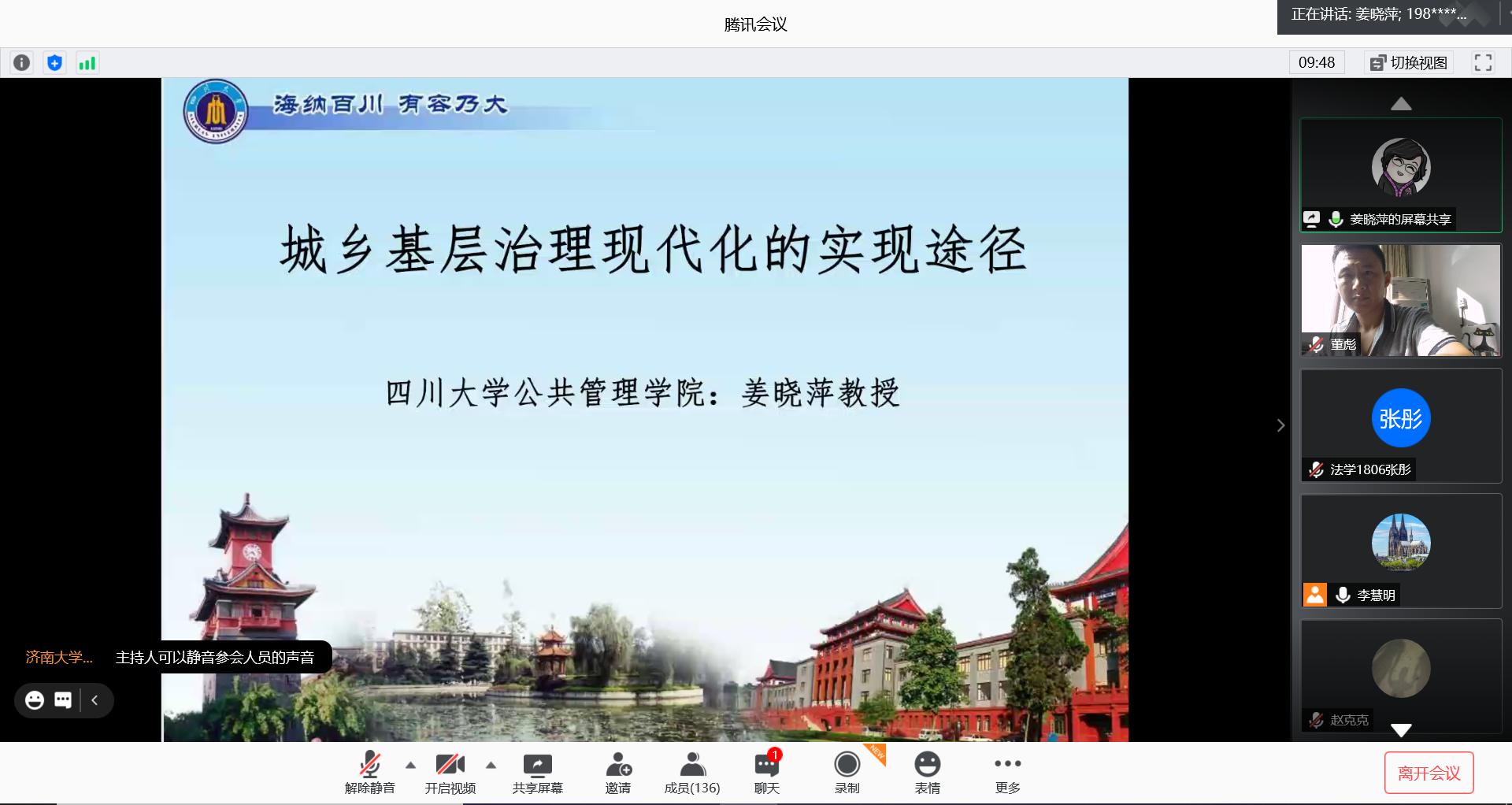 2020暑期系列云讲座第九期在腾讯会议平台顺利举行。活动邀请四川大学城市治理研究院院长姜晓萍教授做题为《城乡基层治理现代化的实现途径》的主题讲座。讲座由绅士漫画