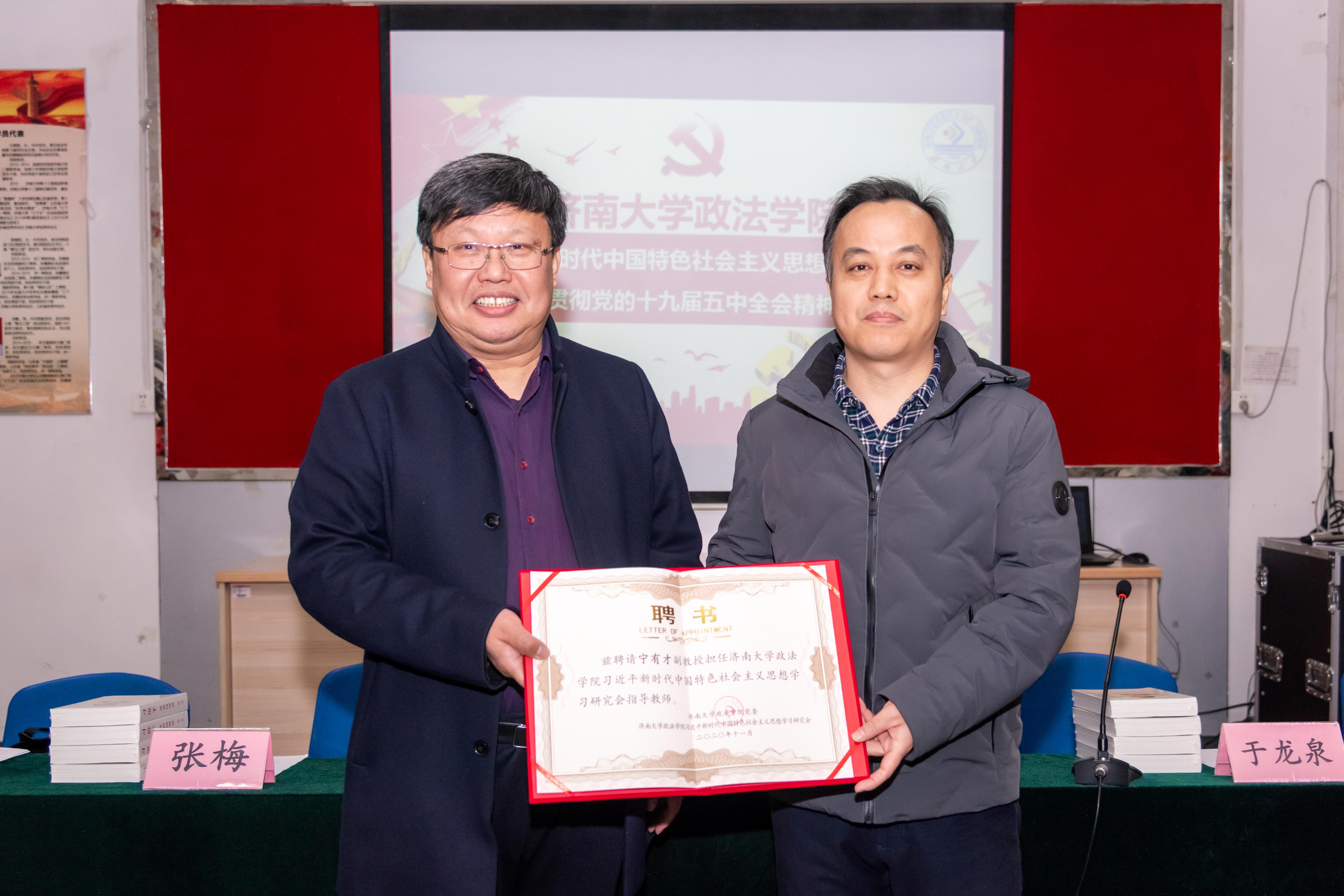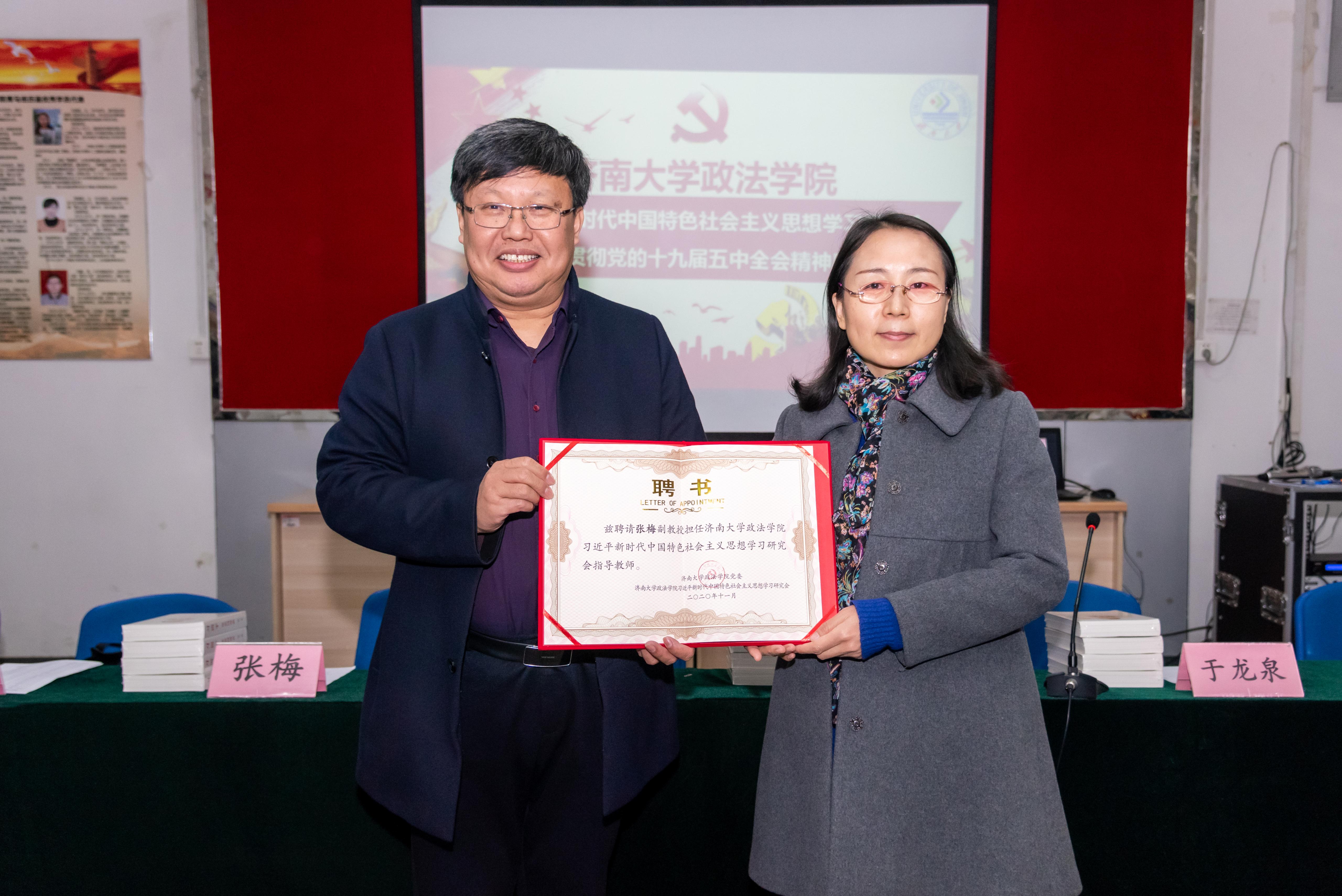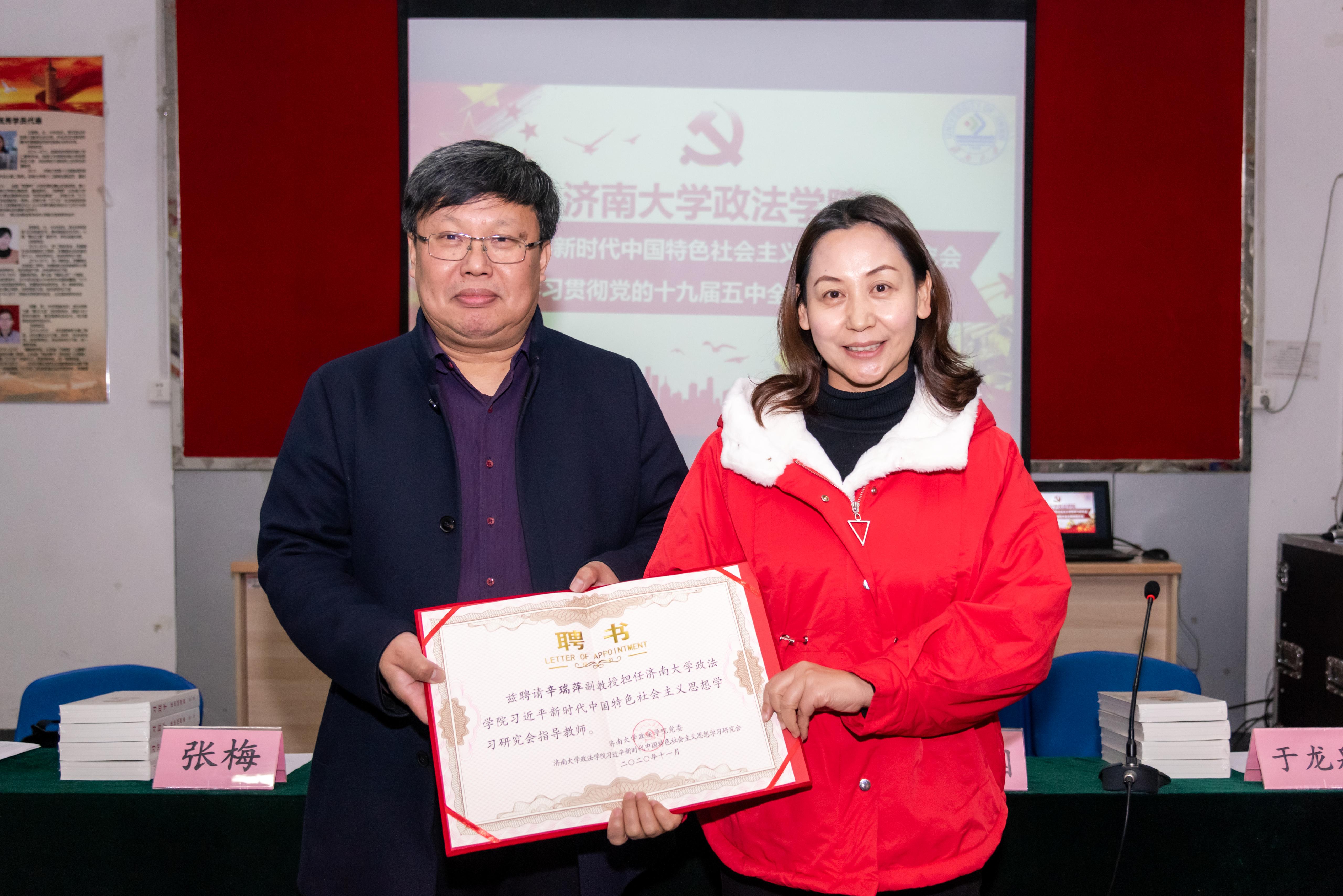 在“青马工程”学生骨干培训班基础上,成立了习近平新时代中国特色社会主义思想学习研究会。在当前认真学习贯彻党的十九届五中全会精神之际,学院从2018级、2019级本科生和研究生中选拔出31名政治素质高、综合能力强的学生干部,组成学习研究会新一届成员。为加强学习研究会建设,学院积极整合力量,发挥专业和师资优势,聘请刘雨辰、张梅、宁有才、齐晓霞、张荣、辛瑞萍6名教师担任学习研究会指导教师。学院正处级组织员国迎春宣读聘请决定,党委书记徐庆国为指导教师颁发聘书,与会嘉宾为每名学员赠送《习近平谈治国理政》第三卷。随后,各指导教师结合自身研究领域,分享学习党的十九届五中全会精神体会,与会师生围绕加强理论学习、促进学风建设、发挥学生干部模范带头作用等方面进行深入座谈交流。