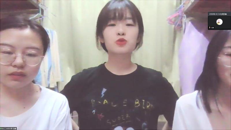 虽然本次毕业生欢送会在云上召开,但会议筹备组在社会学系王春燕老师的指导下,用心积极筹备,为2016级毕业生准备了形式多彩的节目。2019级的戴大磊、陈小淋以及刘菲、王誉瑶分别深情演唱了《起风了》和《歌曲串烧》,歌词中凝聚着期盼,饱含着对学长学姐的祝福;2019级刘慧则带来了热身游戏,不禁让同学们回忆起社工课堂上做游戏互动的点点滴滴;2019级的王晓龙和鲁崇飞(笛子伴奏)带来的诗朗诵《你的眼睛是火焰》,字字真情,声声动情。2019级同学们的精彩演出,不仅展现了新生的风采,而且表达了他们对于毕业学长学姐的送别祝福。2018级贾蕙泽带来的独舞,更为本次云上聚会锦上添花;最后,晚会播放了2018级陈瑶瑶根据2016级同学提供照片所制作的快闪视频,视频中送上了对毕业同学的深深祝福。晚会现场,师生气氛热烈,互动融洽。