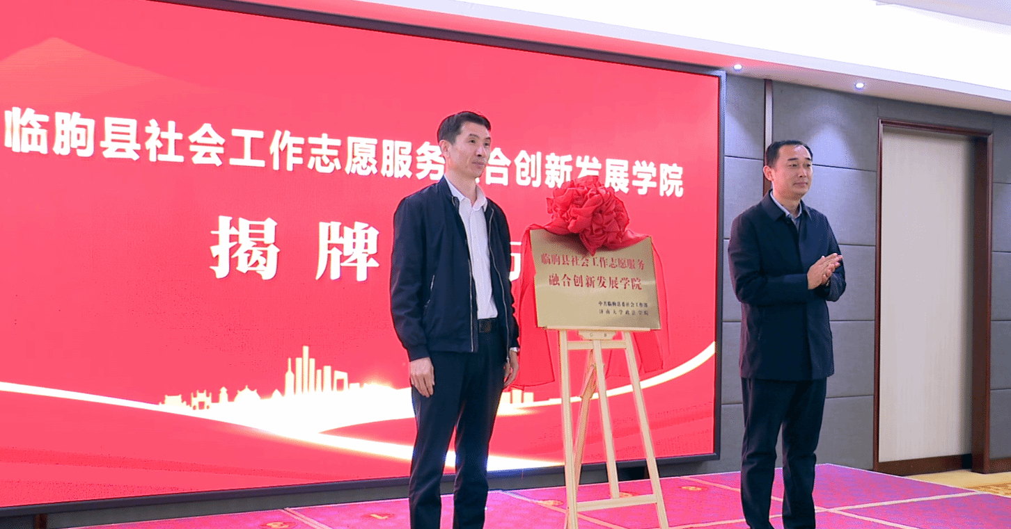与中共临朐县委社会工作部校地合作签约揭牌仪式在临朐县成功举行。学院院党委书记李春慧,院长高功敬,副书记副院长李涛,社会学系教师代表,临朐县委常委、政法委书记李守成,临朐县委办公室副主任、县委社会工作部部长、县委“两新”工委书记唐行宝等社会工作部领导班子成员,城关街道、东城街道、县直有关部门分管负责人,东城街道城市社区党组织书记、社区工作者代表等30余人参加仪式。