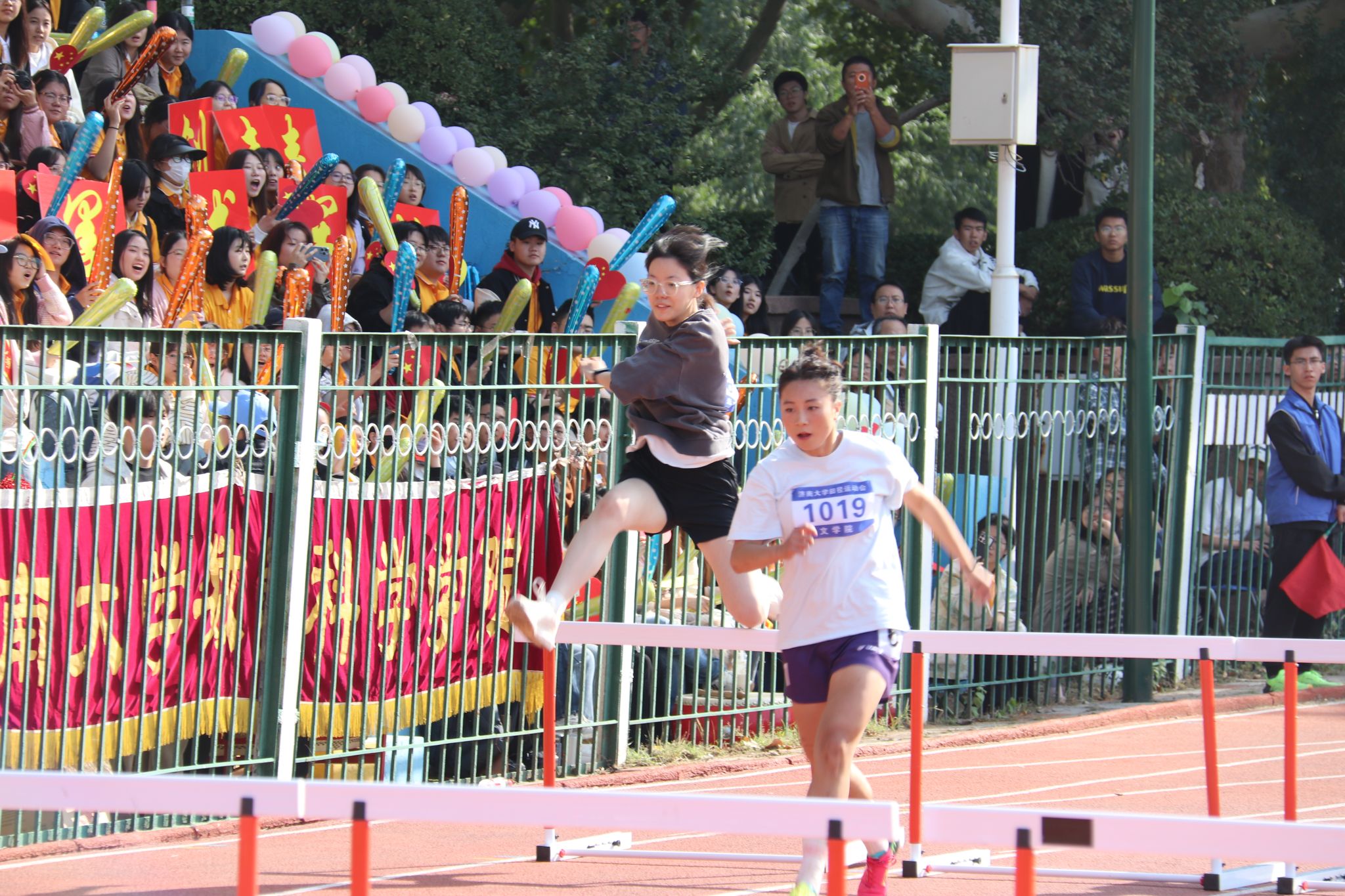 在这场女子 100 米跨栏决赛里,我们深切领略到三位同学的速度与激情,感受到了她们奋力拼搏、勇于超越自我的笃定信念。“海阔凭鱼跃,天高任鸟飞。”她们以切实行动诠释了这句话的内涵,绽放出绚烂夺目的青春之花!