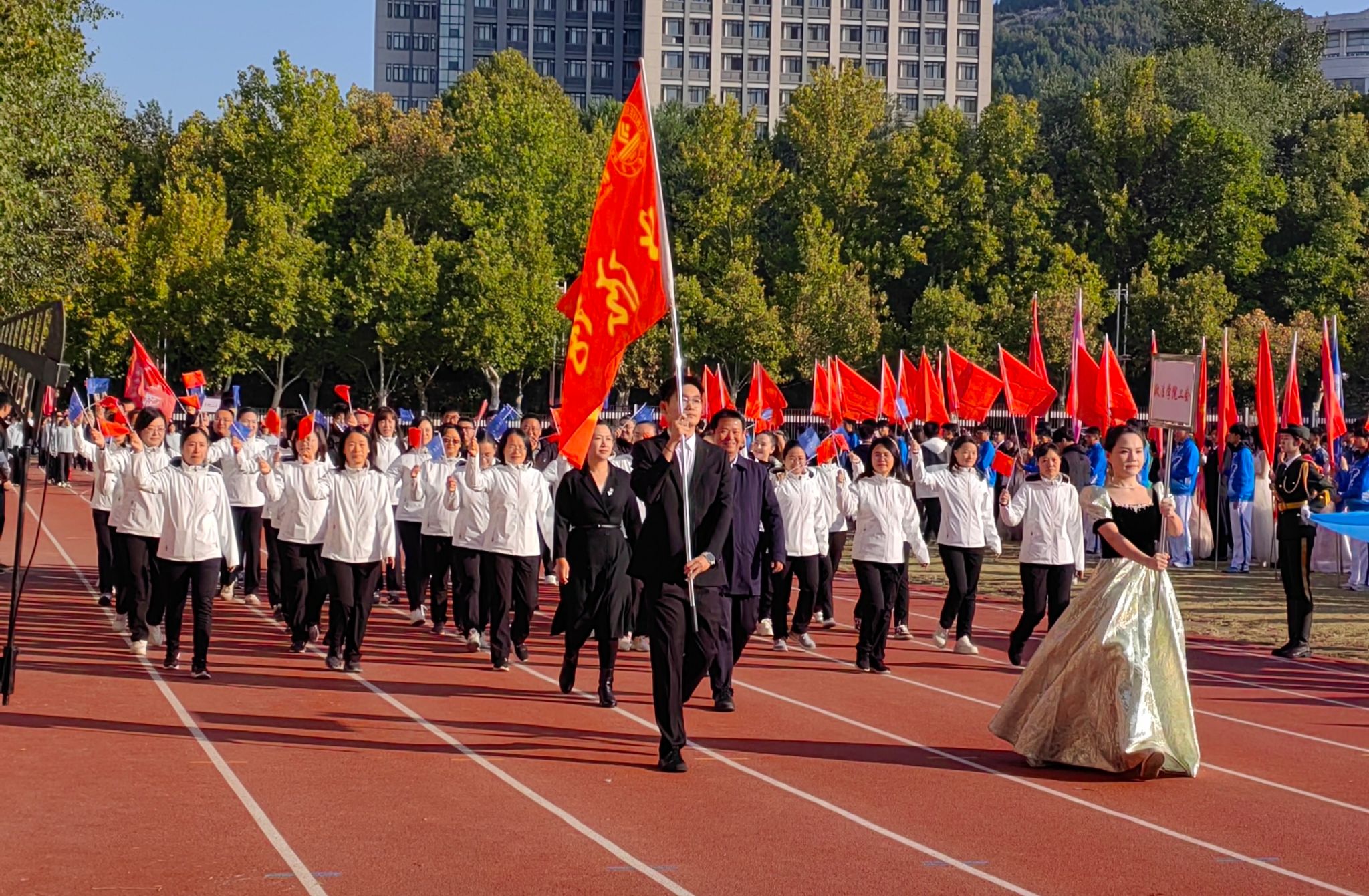运动场上,学院师生敢打敢拼、追求卓越,充分展现了“更快、更高、更强、更团结”的奥林匹克精神,弘扬了不畏艰难、勇往直前的学院精神。本届运动会,学院学生参赛队员在女子甲组200米、1500米、3000米、4*100米接力、女子甲组铅球、铁饼等项目上摘得桂冠,教职工在女子教工青年组200米、4*100米接力、中年组射击;男子教工老年组飞镖、篮球定点等项目上有所突破,师生运动员中有50人次在运动会上斩获佳绩。