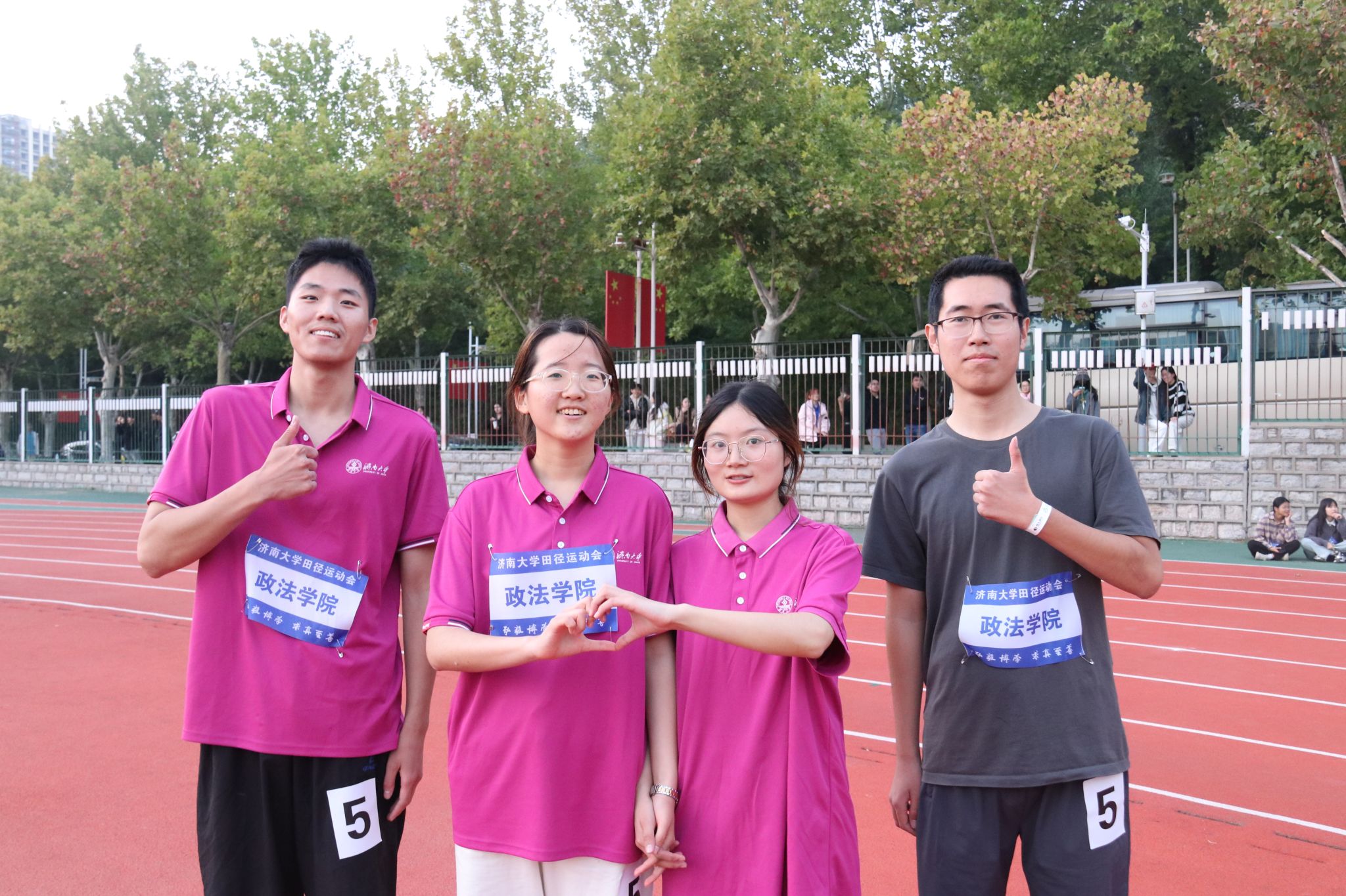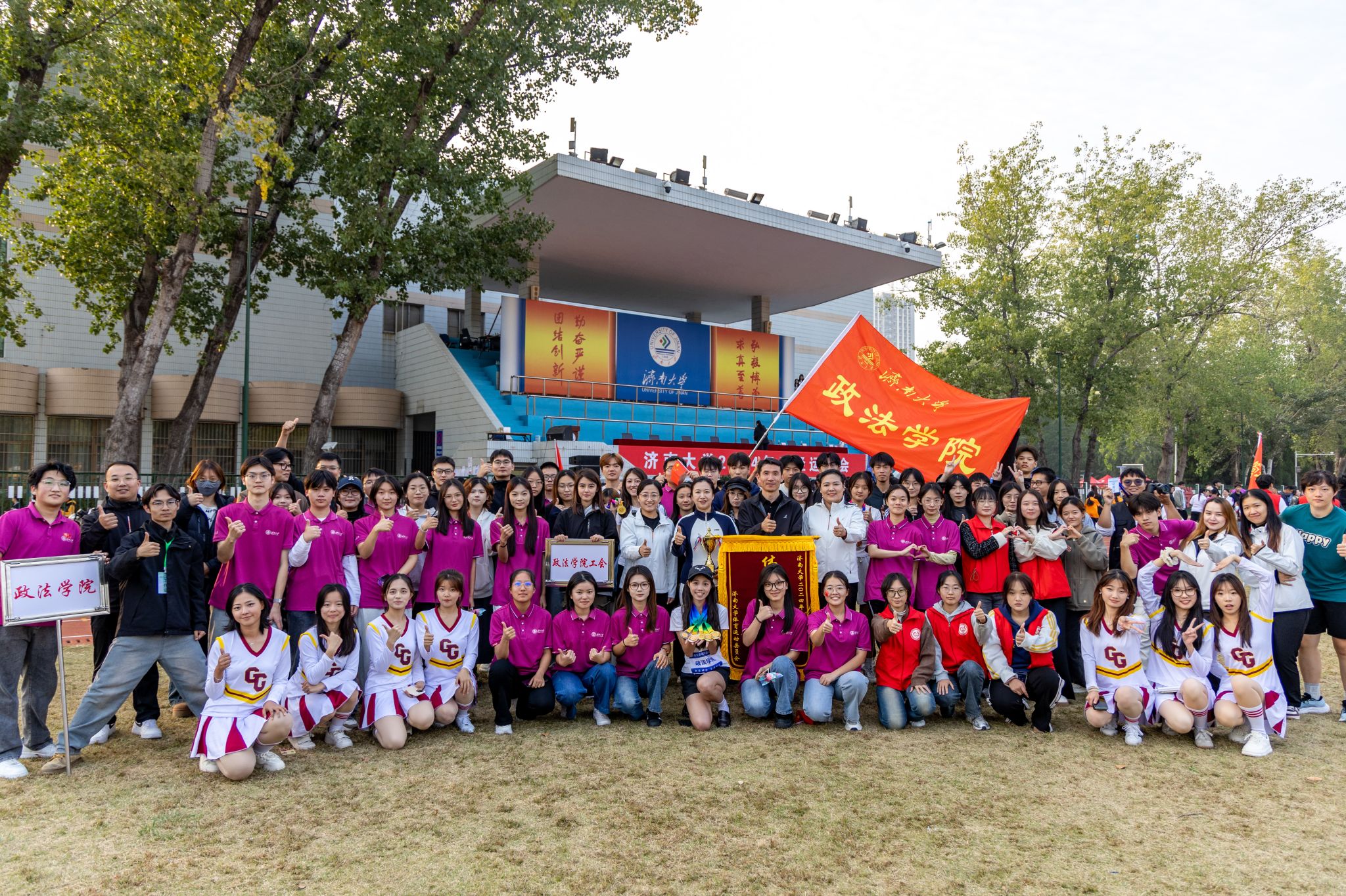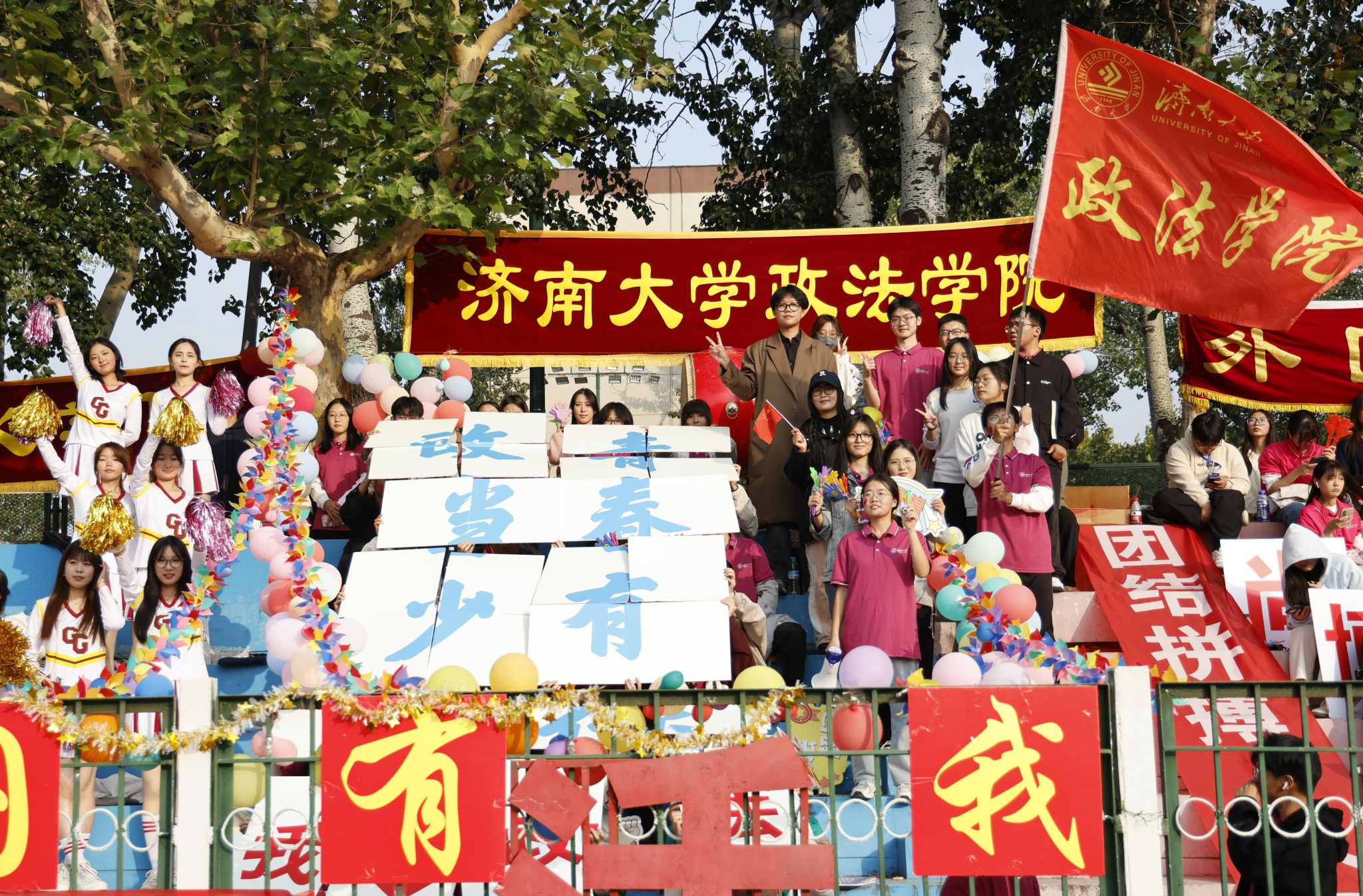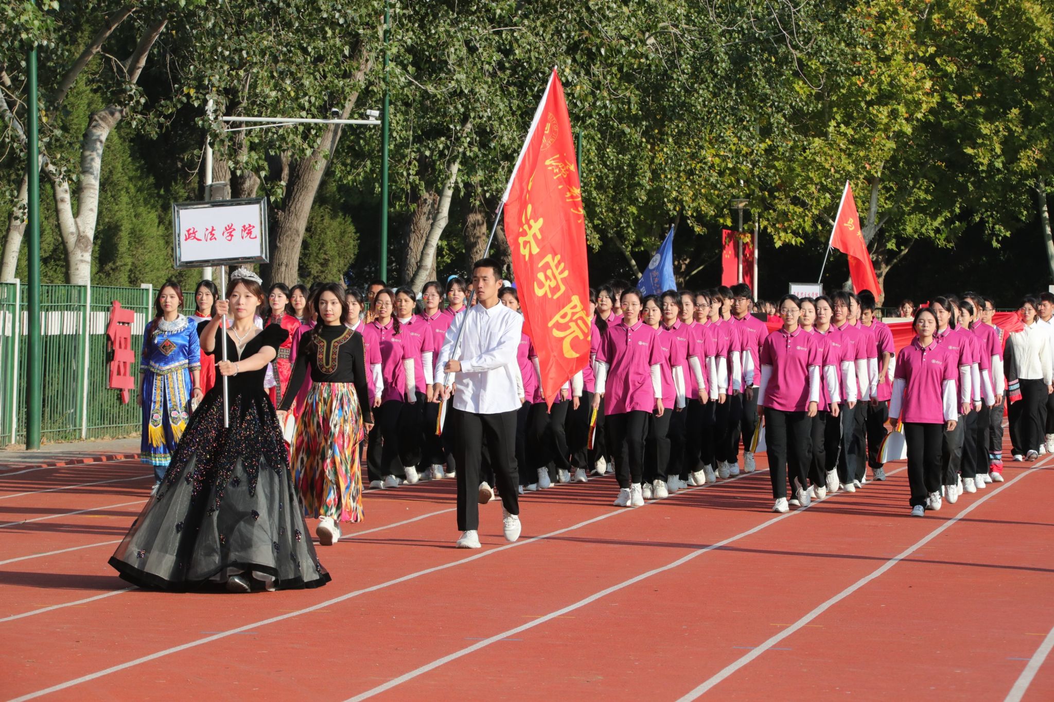 师生运动员方阵队伍昂扬向上的状态,展示学院师生追求卓越的品质;方阵出场展示既突出了学院特色,又展示了良好形象;学生团体操演出队伍以动作规范、整齐划一、朝气蓬勃的精彩表现,充分展示出政法学子的风采;观众看台遵守观赛文明礼仪,为运动员们加油助威,成为运动会上一道亮丽的风景;在此次运动会中,学院党委高度重视、各部门协同配合,学生志愿者们坚守岗位,全员积极操练、上下齐心,为运动会中运动健儿们的顺利参赛提供了保障。