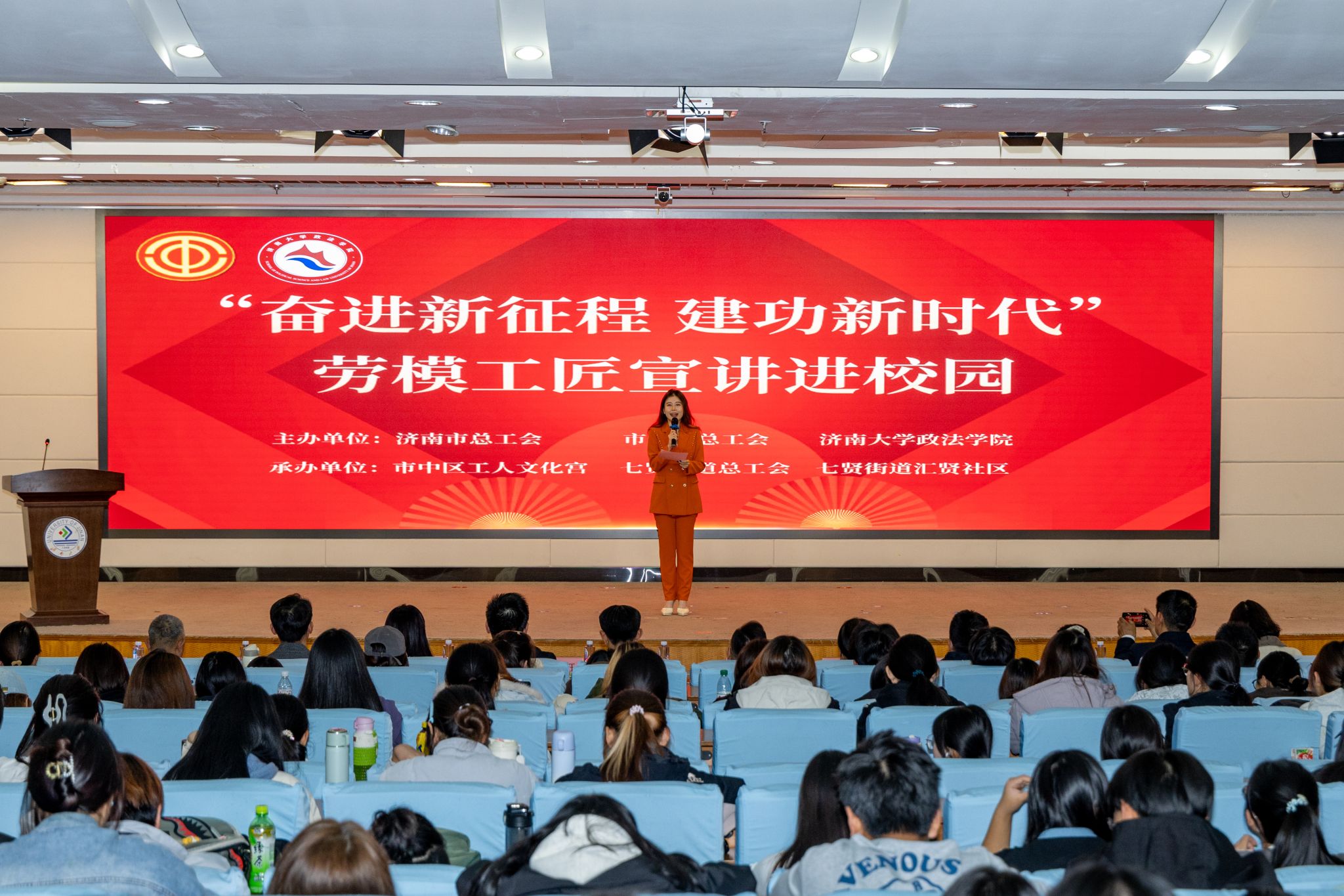 联合济南市市中区总工会、七贤街道总工会邀请济南市总工会“筑梦泉城”劳模工匠事迹宣讲团来我校开展“奋进新征程 建功新时代”劳模工匠宣讲活动。党委常委、副校长李强,济南市总工会宣教部二级调研员张昭力,党委学生工作部(处)部(处)长卢旺,绅士漫画