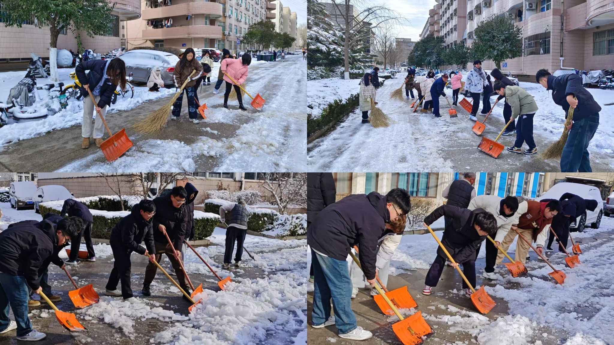的学子们在风雪中历练,学会团结协作,践行担当奉献,在实际行动中理解“服务社会、奉献他人”的真谛,展现了新时代大学生的良好精神风貌。