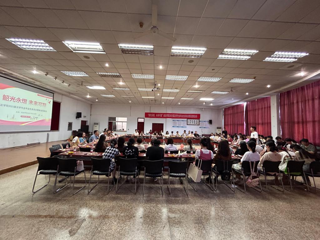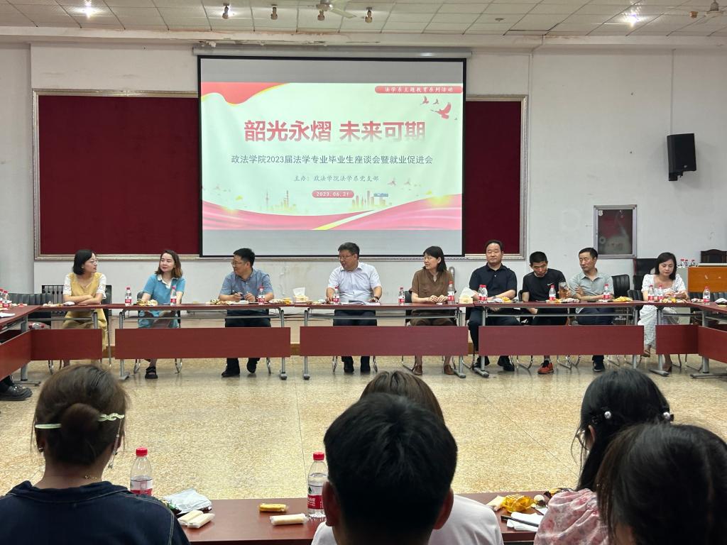 于四教模拟法庭举办“韶光永熠 未来可期”法学系2023届毕业生座谈会暨就业促进会。学校党委常委、统战部部长、绅士漫画