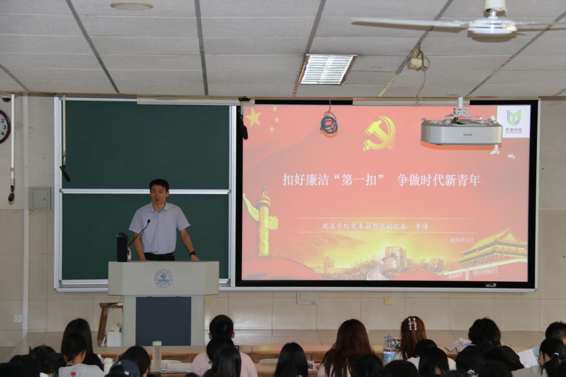 5月17日,学院党委副书记、副院长李涛以“扣好廉洁‘第一扣’争做时代新青年”为主题,为全体毕业生党员讲授专题党课。李涛结合党的纪律建设历程与典型案例,深刻阐释新时代廉洁自律的重要意义,激励毕业生党员始终以党章为镜,严守底线、勇担使命,以清廉底色赋能未来发展。