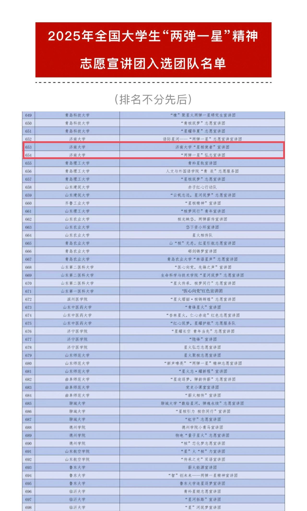 “星核使者”宣讲团、“两弹一星”弘志宣讲团成功入选。