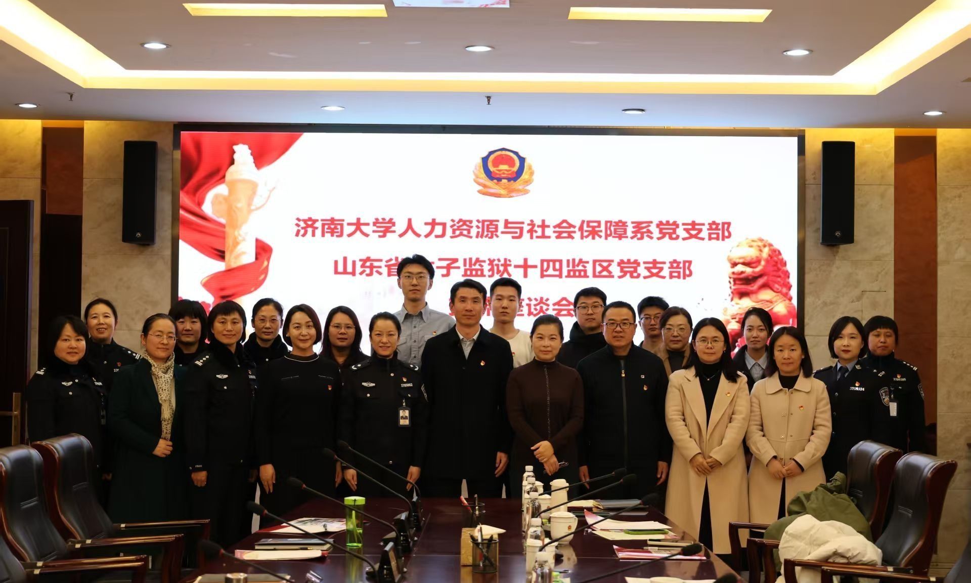 座谈会上,山东省女子监狱十四监区党支部书记和人力资源与社会保障系党支部书记分别详细介绍了各自支部的基本情况、党建工作的特色以及业务发展的方向。随后,双方签署了党支部共建协议,明确了组织共建、党员互动、资源共享等具体合作内容。双方单位领导在讲话中均表示,双方将以此次结对共建为契机,进一步深化党建引领下的多领域合作,推动党建工作与业务发展的同频共振,为法治建设和人才培养注入新动能。