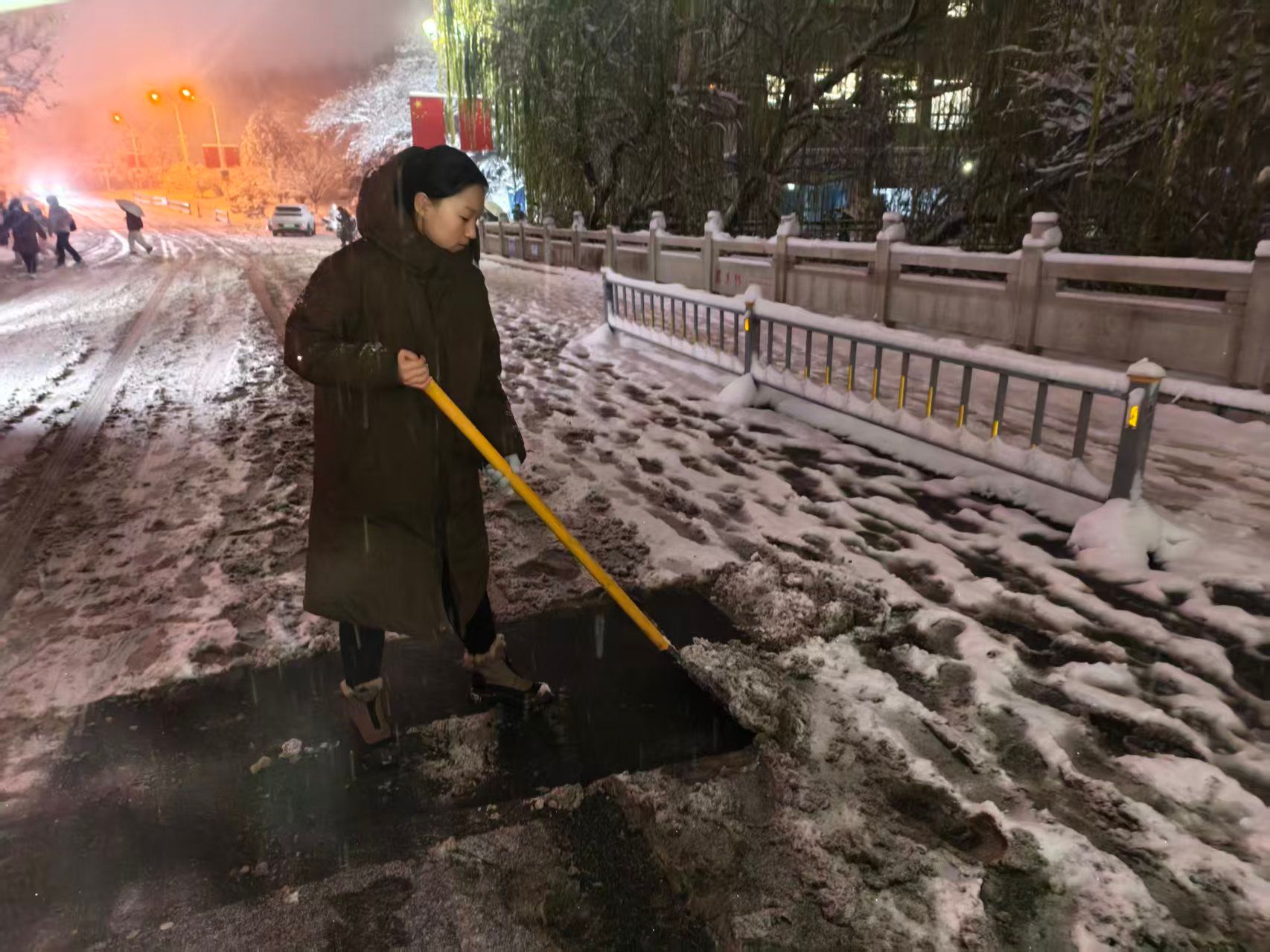师生闻令而动、迅速部署,组建起一支以党员骨干和学生干部为主的志愿服务队,带领同学们投身清雪一线,用切实服务践行责任,以劳动身影诠释担当。