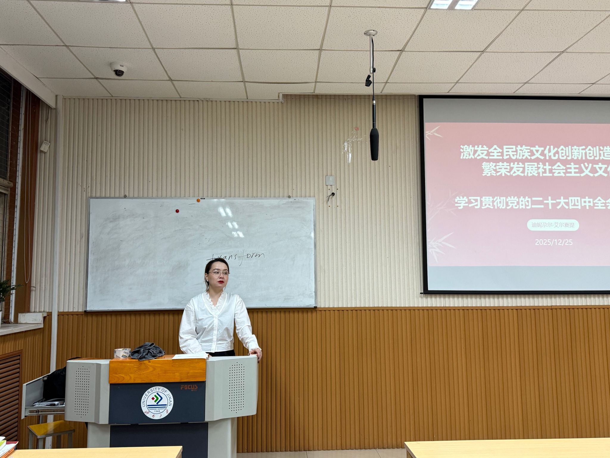 为引导学院少数民族学生深刻领会、自觉践行党的二十届四中全会精神,全面落实党中央关于铸牢中华民族共同体意识、推进中华民族共同体建设的决策部署,充分激活青年群体在民族团结进步事业中的生力军作用。近日,学院开展“学习贯彻党的二十届四中全会精神”系列宣讲活动。本次宣讲由学院副书记、副院长李涛,团委书记刘晓娟和少数民族专职辅导员迪妮尕尔·艾尔夏提等老师主讲。