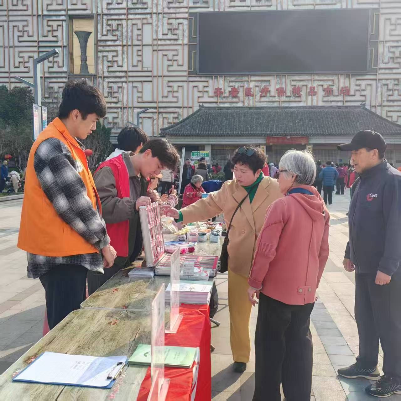 上午8:00,实习生们与工作人员准时抵达现场。按照事先分工,实习生们把桌椅、宣传展架、活动物料一一摆放到位,引导前来参与的各方单位完成签到、领取所需物品,在活动开始前把各项准备工作落实到位。9点活动正式启动,实习生们为来往群众介绍大集里的各类便民服务,带着有需要的居民走到对应的服务点位。遇到前来咨询问题的居民,实习生们认真倾听问题与需求,用负责的态度进行服务讲解;面对年纪较大、理解不太方便的老人,实习生们放慢语速、耐心说明。在活动进行过程中,实习生们还留心记录现场的温暖瞬间,协助现场保持顺畅、安全。免费理发、禁毒知识宣传、孤独症儿童公益项目推广等服务吸引了大量居民参与,在实习生们的积极配合下,现场热闹而有序。