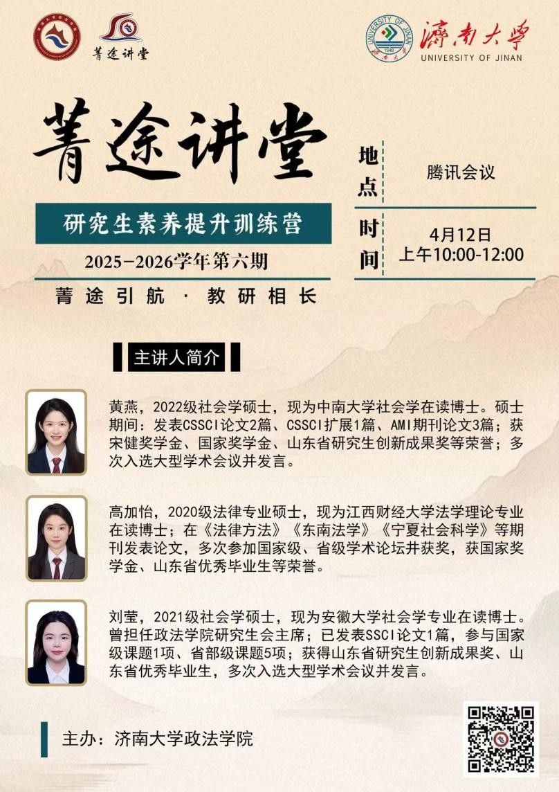 “菁途讲堂”研究生素养提升训练营第六期学术深造规划与考博申博经验分享会顺利举办。本次活动由绅士漫画