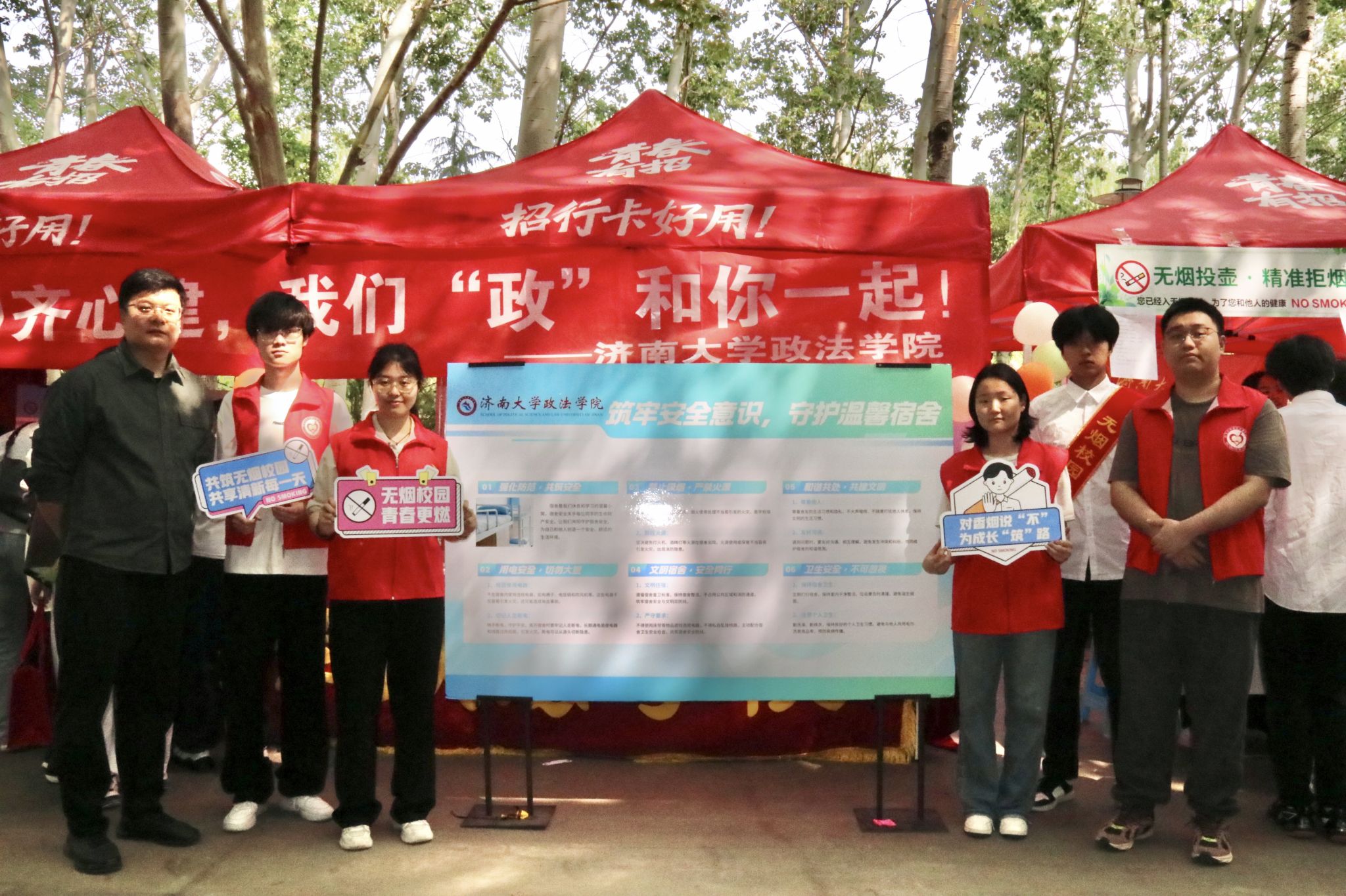 在八食堂广场开展以“共建无烟校园,守护青春净土”为主题的无烟宣传活动,将健康理念、文明素养与宿舍安全、消防知识有机融合,引导师生共筑清新文明校园。