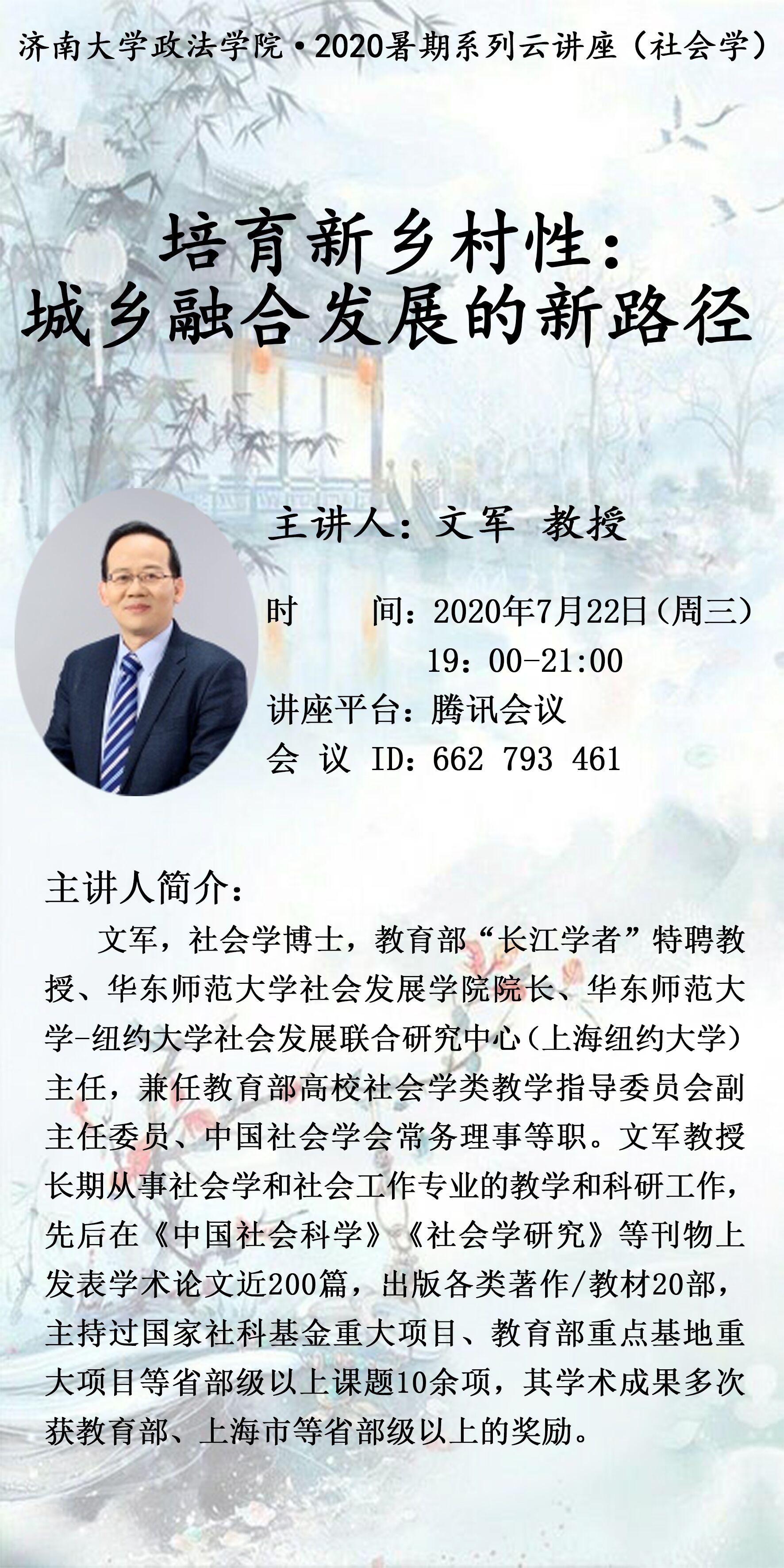 2020暑假系列云讲座--培育新乡村性:城乡融合发展的新路径