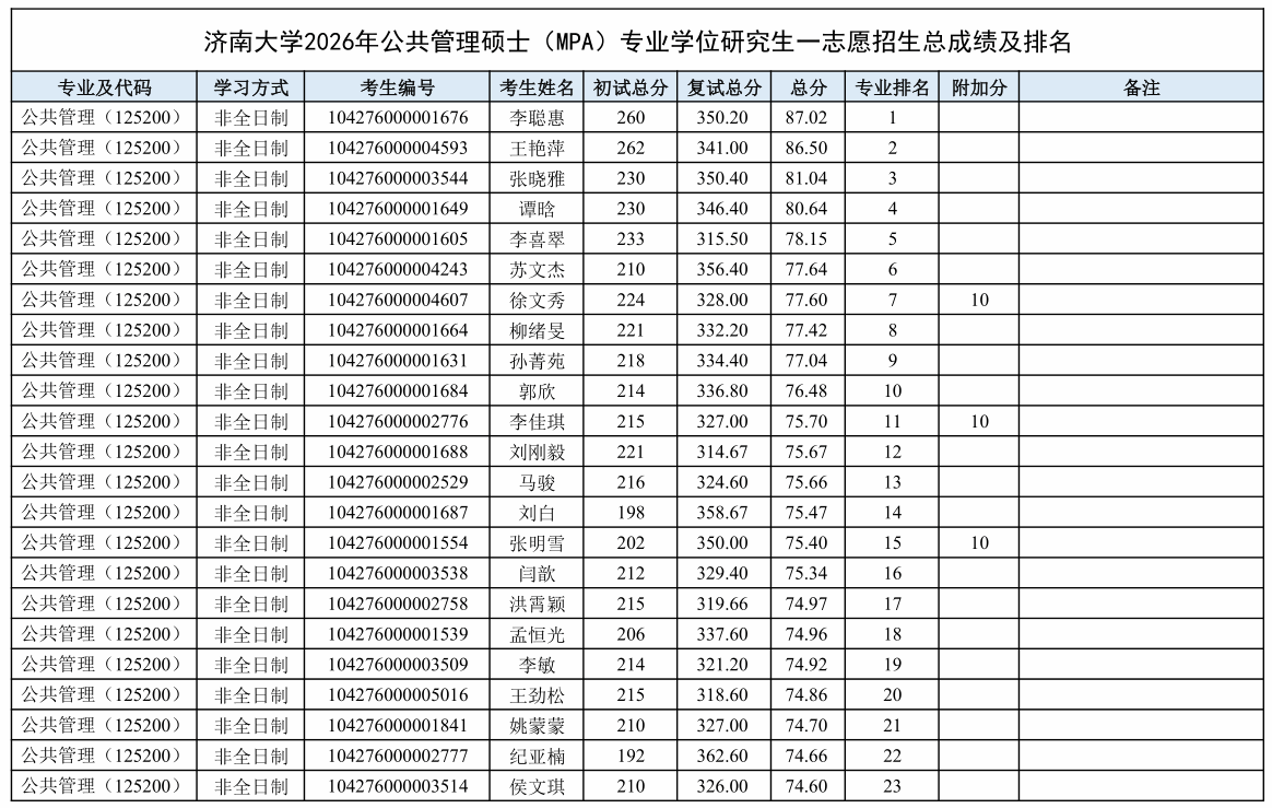 根据《绅士漫画 2026年硕士研究生复试录取工作方案》和《绅士漫画 2026年硕士研究生复试录取工作方案》的相关要求和部署,学院于2026年3月27日至3月28日进行了公共管理(125200)硕士专业学位研究生招生一志愿批次复试工作,现将考生成绩及排名予以公示。